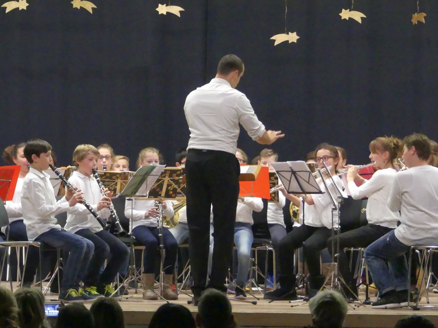 In der ersten Suite von Gustav Holst zeigten die Schülerinnen und Schüler, was sie in fünf Schuljahren in der Bläserklasse gelernt hatten. Ihre Interpretation unter dem Dirigat von Professor David W. Clemmer war überzeugend, transparent und musikalisch und demonstrierte anschaulich das hohe musikalische Niveau, auf dem in den Bläserklassen der Schule gearbeitet wird. Nach einigen flotten Melodien von Michael Jackson endete ein gelungener Konzertabend mit vielen zufriedenen Gesichtern.