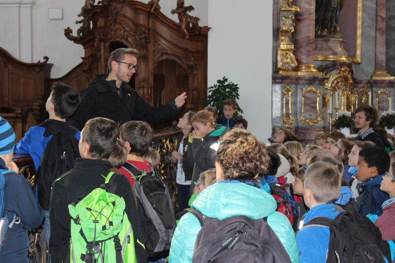 Nach einem kurzen geistlichen Impuls in der  Kapelle der Heimschule ging es  bei strahlendem Herbstwetter zur Wallfahrtskirche  nach  Ettenheimmünster. Dort erzählte Schulseelsorger Steffen Reich die tragische  Legende über den heiligen Landelin, ein  irischer Mönch, der  als einer der ersten christlichen Missionare in die Ortenau kam.  Der Überlieferung nach wurde er von einem heidnischen Jäger, der ihn für einen Zauberer hielt, ermordet. An der Stelle seines Todes sollen fünf Quellen entsprungen sein und er galt als Patron für Augenleiden.  Es gibt auch heute noch viele Menschen, die ihr Trinkwasser aus der Landelinsquelle holen oder  zur Wallfahrtkirche in Ettenheimmünster  pilgern.