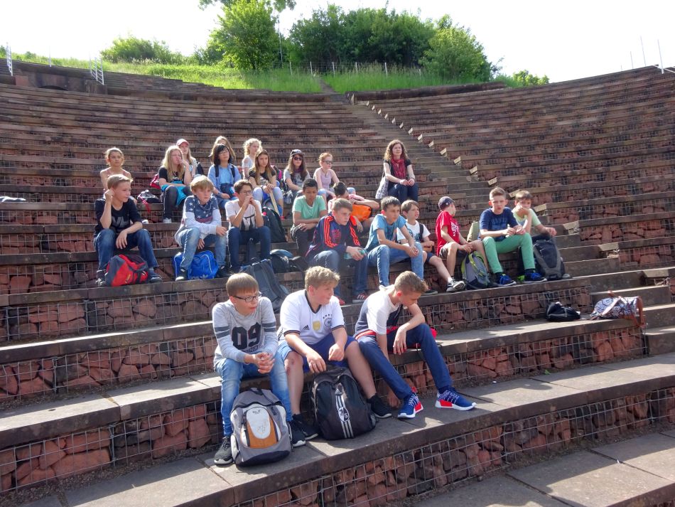 Gemeinsam mit unseren beiden Parallelklassen fuhren wir am 23. Mai 2017 mit dem Bus in die Schweiz zu der ehemaligen Römerstadt Augusta Raurica. Dort begannen wir beim Amphitheater mit unserem Vortrag und dem Rollenspiel, das wir im Vorfeld eingeübt hatten. Die weiteren Stationen waren das Theater, die Thermen, die Curia, das Forum und der Jupitertempel, wo jeweils ein Vortrag präsentiert wurde. So haben wir unseren Mitschülerinnen und -schülern viel Neues über das römische Alltagsleben beigebracht. Es war ein sehr informativer und schöner Tag.