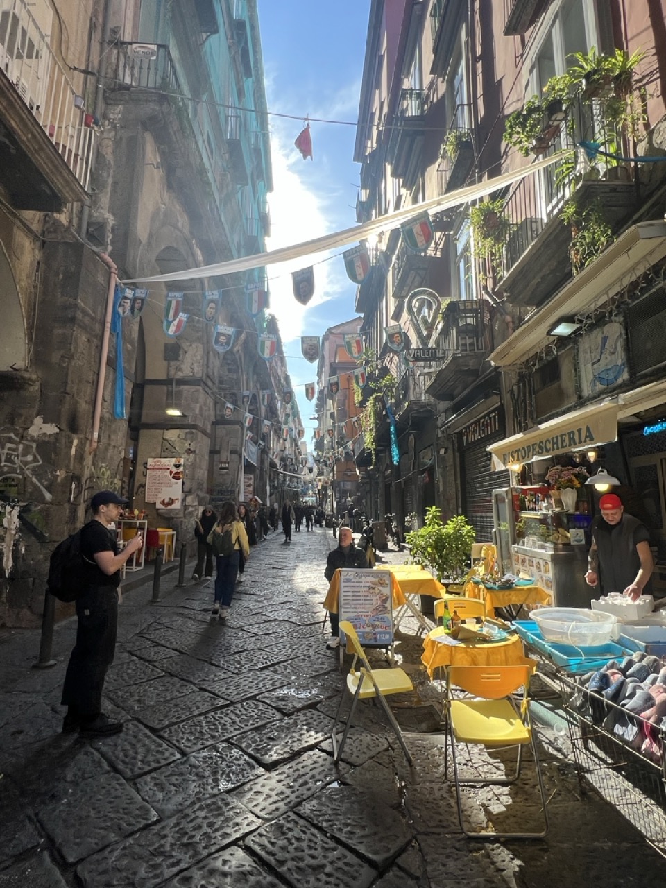 Die Reise für uns, den Mathe-LK von Herrn Klieber und den Mathe-LK von Herrn Nägele mit den Lehrer*innen Katharina Springer, Christoph Klieber und Jonas Hoss startete mit einer Busfahrt über Nacht. Die Ankunft in Sorrent sorgte direkt für Begeisterung – und zwar wegen der Lage der Unterkunft: Die Bungalowanlage liegt etwas höher an der Küste und so hatten wir einen tollen Ausblick auf das Meer. In der Anlage gab die Möglichkeit, selbst zu kochen, was für die ein oder andere Gruppe zu einem spannenden Gemeinschaftserlebnis führte.