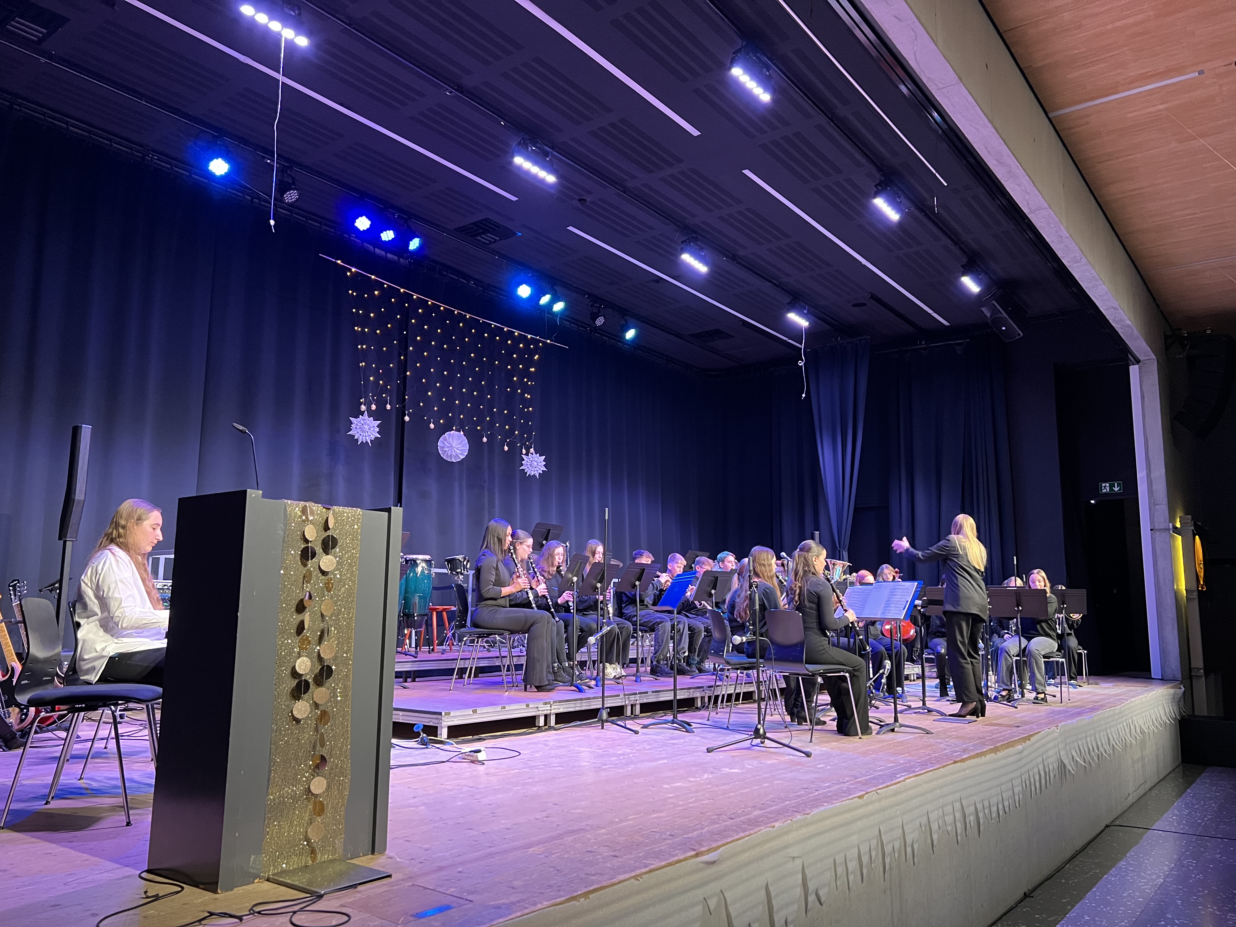 Am vergangenen Mittwoch fand das Winterkonzert der Bläserklassen 7 bis 10 statt, das die Zuhörenden mit einer vielfältigen musikalischen Reise begeisterte. Unter der Leitung ihrer engagierten Musiklehrkräften präsentierten die Schülerinnen und Schüler ein abwechslungsreiches Programm, das von traditionellen Klängen bis hin zu modernen Kompositionen reichte.