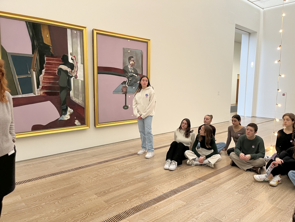 Monets riesengroßes dreiteiliges Seerosenbild, Klees Farbfeldmalerei, Giacomettis ausgezehrte Figuren, Picassos reiches Werk im Überblick, Warhol und Lichtenstein als Vertreter der Pop Art, Scherenschnitte von Matisse, nicht leicht zugängliche Bilder von Francis Bacon und nicht zuletzt ein raumfüllendes begehbares Kunstwerk von Doris Salcedo, das an die ertrunkenen Migranten im Mittelmeer erinnert – all das wurde uns in einer spannenden Führung näher gebracht und hat großen Eindruck auf uns gemacht und uns manchmal auch tief berührt. Das Sammlerehepaar Beyeler legt großen Wert auf die Kunstvermittlung gerade an jüngere Besucher und darum konnten wir die Führung sowie einen anschließenden praktischen Workshop kostenfrei buchen und sind sehr dankbar für diese großzügige Aktion, die wir gerne wiederholen.