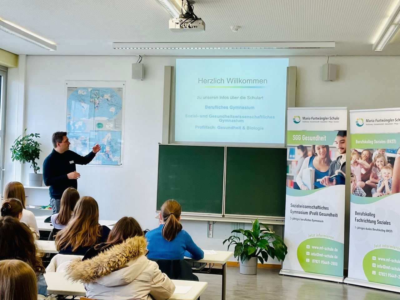 Eingeladen waren hierzu insgesamt zehn verschiedene Firmen bzw. weiterführende Schulen. Neben bereits bekannten Gästen der Gewerblichen Schule und der Maria-Furtwängler-Schule aus Lahr, die Bildungsmöglichkeiten nach der Mittleren Reife vorstellten, konnten auch neue Firmen für einen Besuch gewonnen werden. So stellte z.B. die Firma Geiser aus Ettenheim ihre Leistungen und Ausbildungsmöglichkeiten rund um das Thema Haustechnik vor. Aber nicht nur technische Betriebe wie Schneider Electric, quattro-form oder Neugart informierten über eine berufliche Ausbildung, sondern auch der pflegerische und medizinische Bereich wurde vorgestellt: Das Universitätsklinikum Freiburg sowie Frau Göhring vom ASB erklärten den Schülerinnen und Schülern eindrücklich den Berufsalltag. Das Thema Banken sowie alles rund um Veranstaltungen wurden von der Volksbank und dem Europa Park dargeboten.