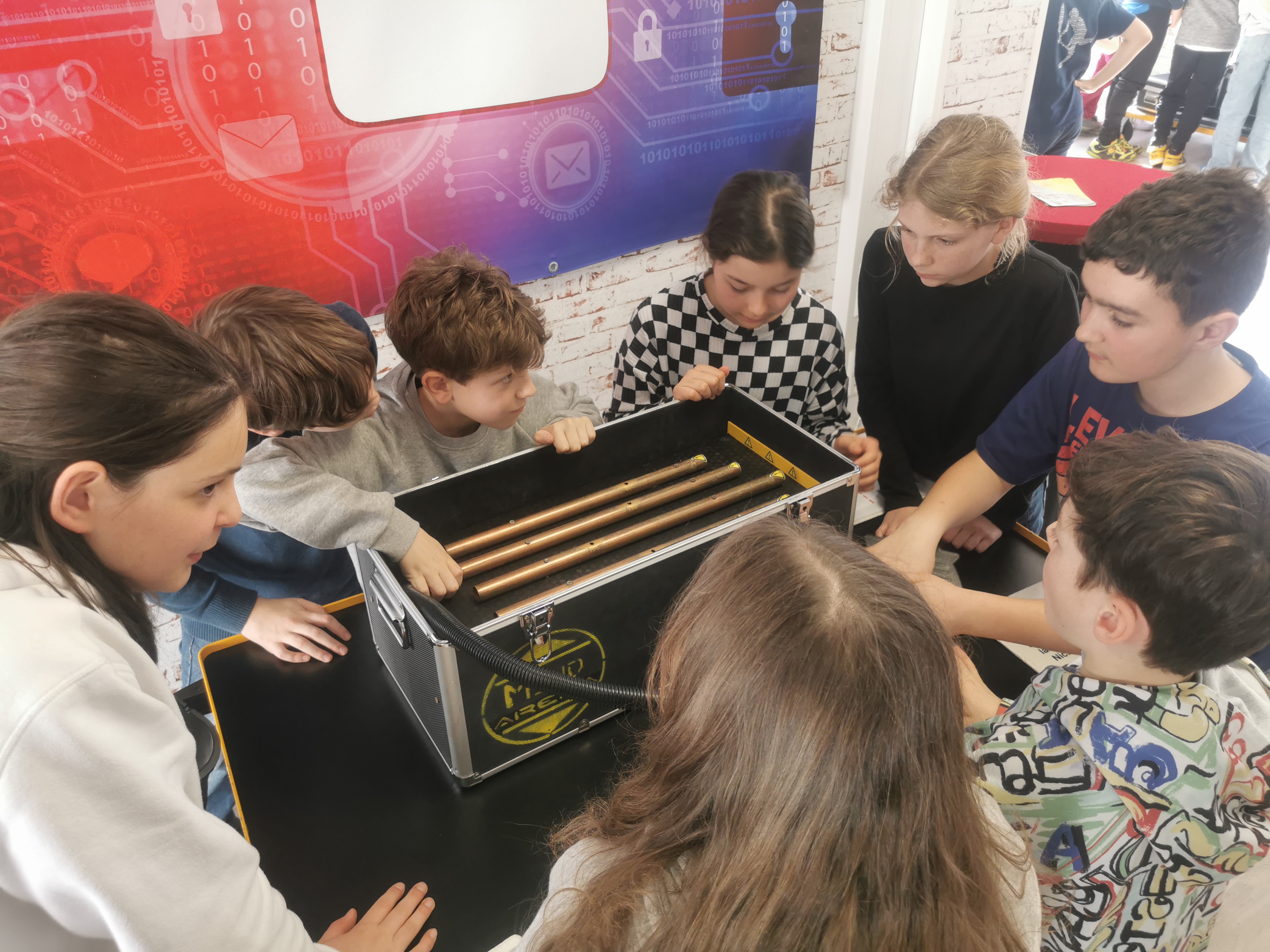 Am Dienstag hatten wir in den ersten vier Stunden Unterricht. Danach haben wir eine Schulhausrallye gemacht, während der wir unseren Austauschpartnern das Schulhaus gezeigt haben. Im Anschluss konnten wir in der Mensa etwas essen. Um 14:00 Uhr hat dann unser Nachmittagsprogramm begonnen: Man konnte zwischen Sport, Kunst und Technik wählen. Dieser Tag war sehr lustig es gab viele spannende und lustige Erlebnisse.