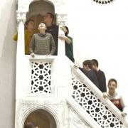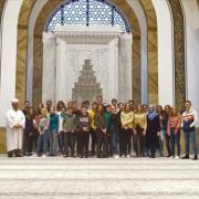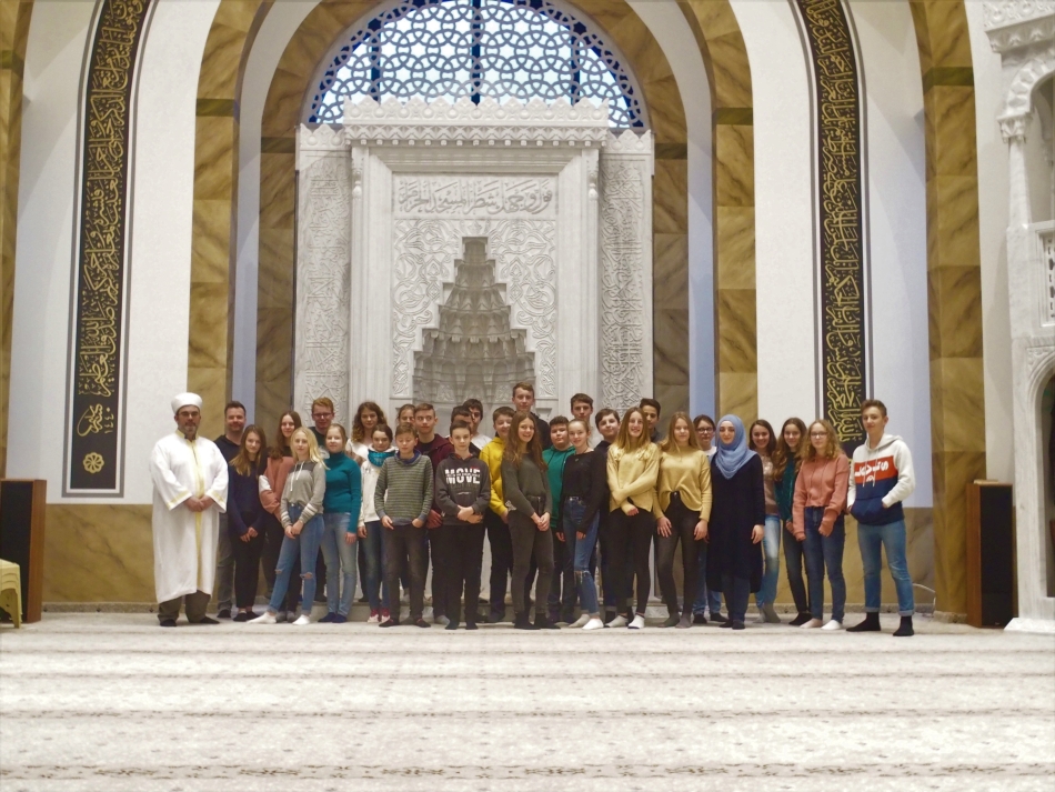 Die zweite Exkursion führte die Klasse gemeinsam mit Herrn Giesel nach Lahr. Mit dem Zug ging es von Orschweier nach Lahr und dann zu Fuß zur nahegelegenen neuen Moschee. Allein schon von außen ein beeindruckendes Gebäude! Unsere Gastgeberin Frau Gürbüz begrüßte uns und führte uns zuerst in den Gebetsraum, vor dessen Betreten alle zuerst ihre Schuhe ausziehen mussten. Nachdem die Schülerinnen und Schüler viele Informationen über das Gebäude und das Gemeindeleben erzählt bekamen, erlebte die Klasse sogar einen echten Gebetsruf, der von Imam Hüseyin Çınar vorgesungen wurde. Alle konnten dann noch viele Bilder des eindrucksvollen Raums fotografieren und auch die Minbar (Gebetskanzel) erklimmen. Nachdem die Klasse jede Menge Fragen stellen durfte, besuchten wir noch die Empore unter der Kuppel, die allein durch ihre Akustik schon ein echtes Highlight ist.