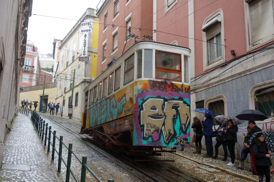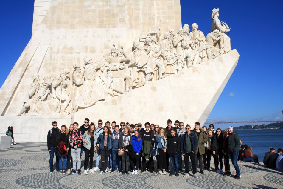 Von der klirrenden Ettenheimer Kälte in die südliche Wärme Lissabons: Während wir bei unserem Start am frühen Morgen an der Heimschule noch froren, empfingen uns auf der Fahrt vom Flughafen zum Hans-Brinker-Hostel ein strahlend blauer Himmel und Sonnenschein. Zu einer ersten Erkundungstour fuhren wir noch alle gemeinsam mit unseren Begleitlehrern Frau Schleich, Herrn Kieferle und Herrn Lennartz mit der Metro in die Innenstadt und besichtigten einige interessante Spots der Stadt, wie z.B. das alte Castello und fuhren mit der historischen Straßenbahn E28.