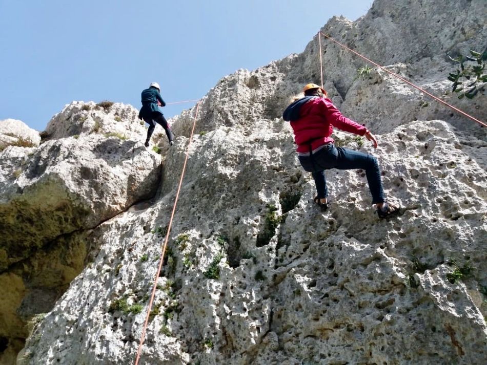 Der dritte Tag war für viele von uns ein besonderer Tag. Er begann wie die vorherigen Tage mit einem gemeinsamen Frühstück im Hotel. Danach stiegen wir auf die Fähre zur maltesischen Nachbarinsel Gozo. Auf Gozo konnte ein Teil der Klasse, gemeinsam mit drei Guides und Herrn Müller, die Insel mit dem Mountainbike erkunden. Die andere Hälfte der Klasse machte sich mit Herrn Gruseck auf zu einer geführten Klettertour im schönen Valley von Mgarr Ix Xini. Beide Programmpunkte waren eine tolle Abwechslung zu den Aktivitäten, die wir bisher auf Malta erlebt hatten. Nicht zuletzt weil der Mittwoch ein wundervoller sonniger Tag war, den nicht jeder ohne eine rote Nase überstanden hatte.