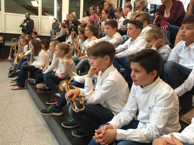 Herzlichen Glückwunsch an die unsere jüngste Bläserklasse R5b! Gemeinsam mit ihren beiden Schlagzeugern aus der Klasse R5e waren die Schülerinnen und Schüler bei einem Wertungsspiel des Oberbadischen Blasmusikverbandes in Kenzingen. Das Vorspiel der Klasse nach nur sieben Monaten Lernzeit überzeugte die Jury und wurde mit dem Prädikat „Sehr gut mit Stern“ ausgezeichnet. Wir sind gespannt, was von der Klasse in Zukunft noch zu hören sein wird.