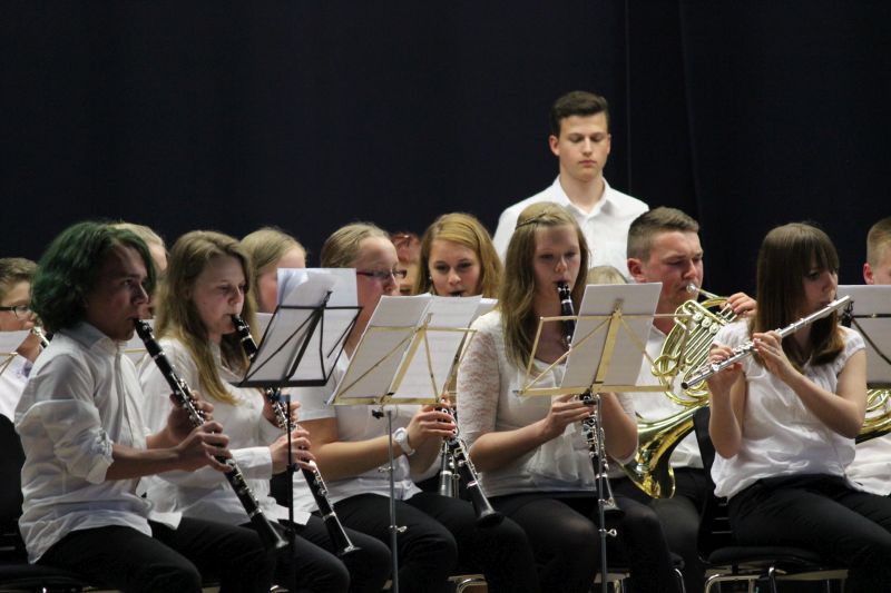 Als Ergebnis der Arbeit der vergangenen Jahre bot die Orchestergruppe 9/10 unter der Leitung von Markus Albu von Beginn an ein hohes Niveau. Sie kamen auch um eine Zugabe nicht herum. Und was für eine! Das Blasorchester spielte für die Zuschauer eine Interpretation des James Bond Theme, bei dem verschiedene Schülerinnen und Schüler Soli spielten und das Publikum von ihrem Talent und Können überzeugten.