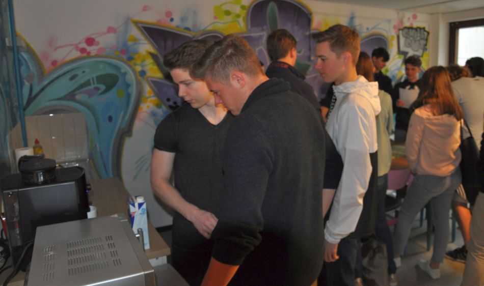 Marieke: Es ist sehr cool, dass wir uns in der Schule verewigt haben und dass es das Zimmer noch lange geben wird. Vorher wussten wenige Leute, dass es ein Oberstufenzimmer gibt und wo es ist, jetzt herrschte ein reger Betrieb, die Schlüssel werden oft bei den Kurssprechern geholt, es kommt gutes Feedback von den Mitschülern. Wenn Mitschüler dann neben mir einen Kaffee trinken, freut es mich natürlich und ich denke, trotz vereinzelter Kritik, ist die Mehrheit der Schüler dankbar. Für mich ist es ein Erlebnis zu sehen, dass wenn man sich für eine Sache einsetzt, am Ende wirklich was bei rauskommen kann. Mir hat es gezeigt, dass man in und mit der SMV auch wirklich etwas umsetzen und bewegen kann, dass etwas entstehen kann, das besteht.