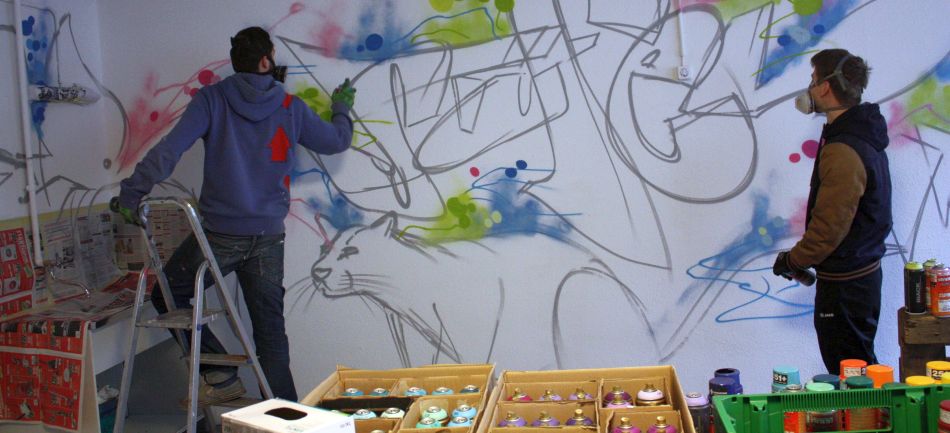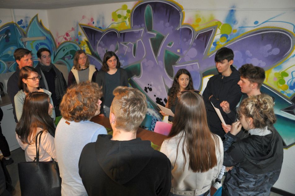 - David (J2) wollte schon lange das OZ umgestalten. Er war in der Gruppe für den Einkauf und die Finanzen aktiv und mitverantwortlich für die Organisation und Gestaltung des Graffitis.