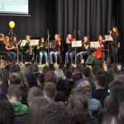 Philipp Drechsler stimmte als MAV-Vorsitzender schließlich ein Lied auf alle Kolleginnen und Kollegen an, die uns verlassen. Der gemeinsam gesungene Refrain schlug schlussendlich aber auch den Bogen zu allen, die sich auch künftig gemeinsam für unsere Schule einsetzen werden – und zum gemütlichen Ausklang des Abends bei einem kleinen Menü aus der schuleigenen Küche.