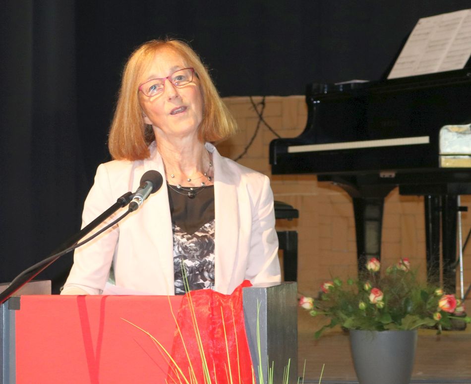 Ähnlich verabschiedete sich Elisabeth Ihnen aus ihrem „Traumberuf an ihrer Traumschule“. Nach 41 Jahren als Sportlehrerin und Leiterin der Koch-AG verabschiedete sie sich dankbar für viele gemeinsame Jahre und Erlebnisse in den Ruhestand. Die Gabe zur persönlichen Begegnung stellte auch Eberhard Pfister in den Mittelpunkt seines Dankes an Elisabeth Ihnen. Sie habe es dank ihrer kontinuierlichen und verlässlichen Arbeit und ihrer offenen, feinen und tiefsinnigen Art geschafft, in 41 Jahren in vielen Familien mehrere Generationen in der Schulzeit zu begleiten – und dabei immer als vertrauensvolle Lehrerin wahrgenommen zu werden. Die Kolleginnen und Kollegen der Sportfachschaft verabschiedeten sie in gereimten Worten und mit dem Wunsch, dass sie nach all den Jahren, in denen sie für andere da war, sie nun zufrieden für sich da sein kann.