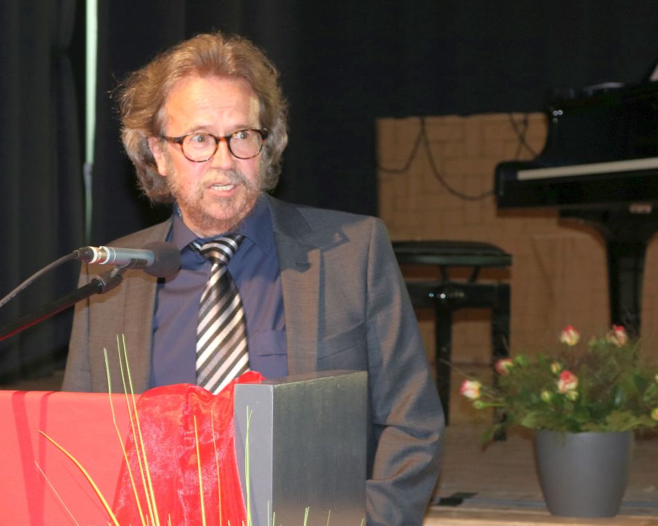 Mit Elisabeth Ihnen und Christoph Heizmann wurden schließlich eine Lehrerin und Lehrer in den Ruhestand verabschiedet, die aufgrund ihres jahrzehntelangen Engagements zu Gesichtern der Heimschule geworden sind. Christoph Heizmann unterrichtete 37 Jahre die Fächer Deutsch und Englisch am Gymnasium, spielte in der einstigen Big Band von Schülern und Lehrern, machte sich um die Pressearbeit und das Jahrbuch verdient und vor allem um die Theaterarbeit der Heimschule, indem er als Leiter der Theater-AG 39 Stücke auf die Bühne brachte. Eberhard Pfister würdigte diese vielseitige und ausdauernde Arbeit dieses „Urgesteins“. Die Fachschaften Deutsch und Englisch bedankten sich anhand ausgewählter Shakespeare- und Goethe-Zitate. img_3749_0.jpgDabei wurde deutlich, welch ein begeisternder und im wahrsten Sinne des Wortes vorbildlicher Kollege Christoph Heizmann mit seiner Gelassenheit, Erfahrung und Sicherheit war – und wie es ihm immer wieder gelang, viele Menschen um sich herum mit dem „Virus Kultur“ anzustecken. „Ich war gern hier“, resümierte er selbst berührt – und verabschiedete sich mit dem Wunsch, dass es jedem so gehen möge, immer gern an die Schule mit all ihren vielfältigen Aufgaben zu kommen.