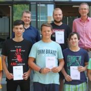 Aus dem Kreise des Lehrerkollegiums wurden ebenso die Referendarinnen und Referendare Sarah Limberger, Lara Uttenweiler, Clemens Straub und Falko Zipfler verabschiedet. Die bisherigen Referendare Christoph Klieber, David Krüger und David Seifert wurden zugleich als künftige Kollegen am Gymnasium willkommen geheißen. Ein besonderes Dankeschön richtete Eberhard Pfister an Nico Rautenberg, der nach erfolgreich absolviertem Referendariat im vergangenen Schuljahr noch mehrere Monate als Krankheitsvertretung am Gymnasium unterrichtete.