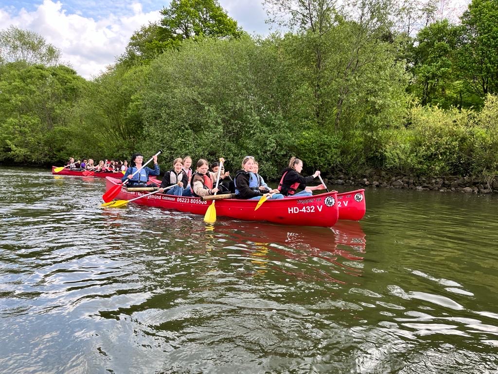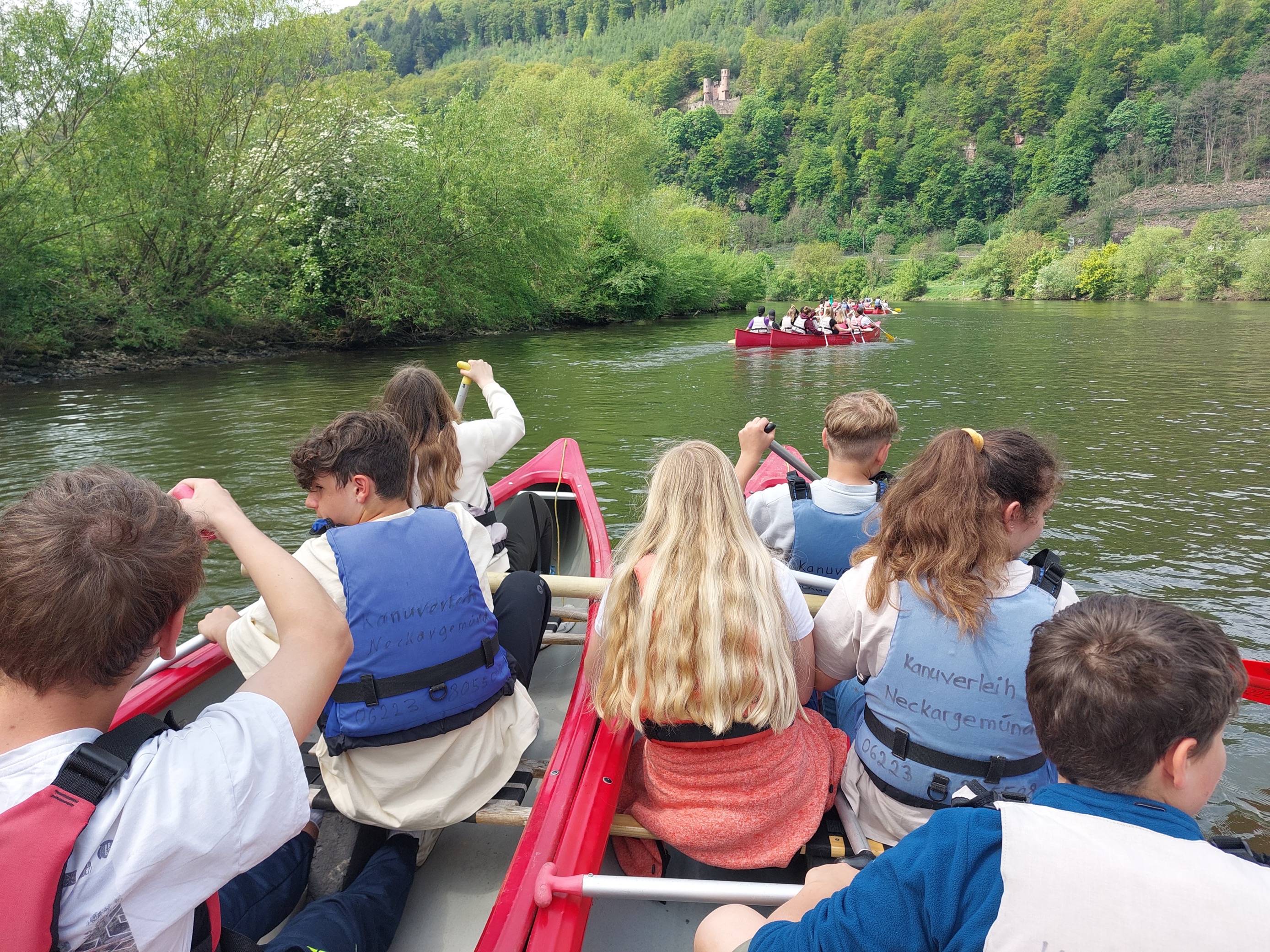 Am nächsten Tag fuhren wir mit der Bahn ans Ufer des Neckars, an dem uns viele rote Kanus erwarteten.  Die Fahrt war sehr schön und lustig. Leider spielte das Wetter nicht ganz mit, sodass wir am Ende der Kanufahrt alle pitschnass waren. Als das Wetter wieder besser wurde, besichtigten wir das berühmte Heidelberger Schloss und erfuhren viel über seine Vergangenheit und Geschichte. Abends gab es einen Spieleabend, bei dem jeder Spaß hatte und viel gelacht wurde.
