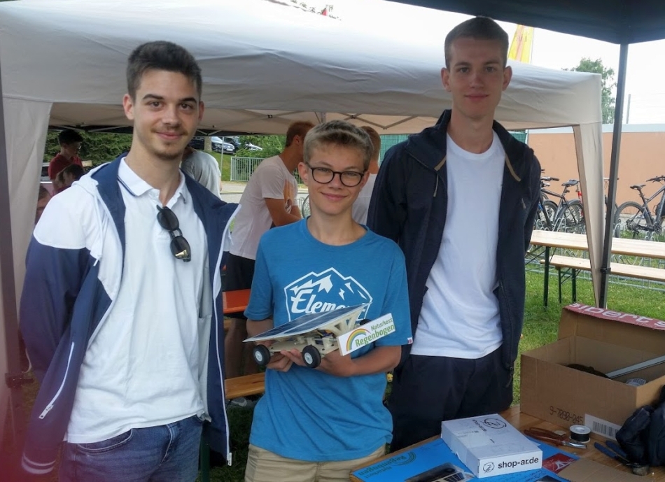 Die weiteren Teams kamen aus der offenen Werkstatt der Realschule von Christine Fritsch. Ben Stahl und Sebastian Ruf (beide R9c) schieden wegen der starken Gegner kurz vor dem Halbfinale aus. Dieses Team wurde von der Ettenheimer Sparkasse gesponsert. Jeremias Huber (R9b) erreichte das Finale. Das Auto war das schnellste Auto im Finalrennen, hatte aber leider Schwierigkeiten beim Wenden, dadurch gewann Jeremias den dritten Platz beim Zeitfahren und erhielt gleichzeitig noch den Sonderpreis für technische Innovation. Sein Auto überzeugte die Jury durch den Einsatz von verschiedenen Technologien, wie z.B. dem Einsatz einer CNC-Fräse, 3-D-Drucker und beeindruckte durch eine sehr saubere Verarbeitung. Er verarbeitete hauptsächlich Holz, Kunststoff und Aluminium. Gesponsert wurde das Auto von Naturkost Regenbogen.