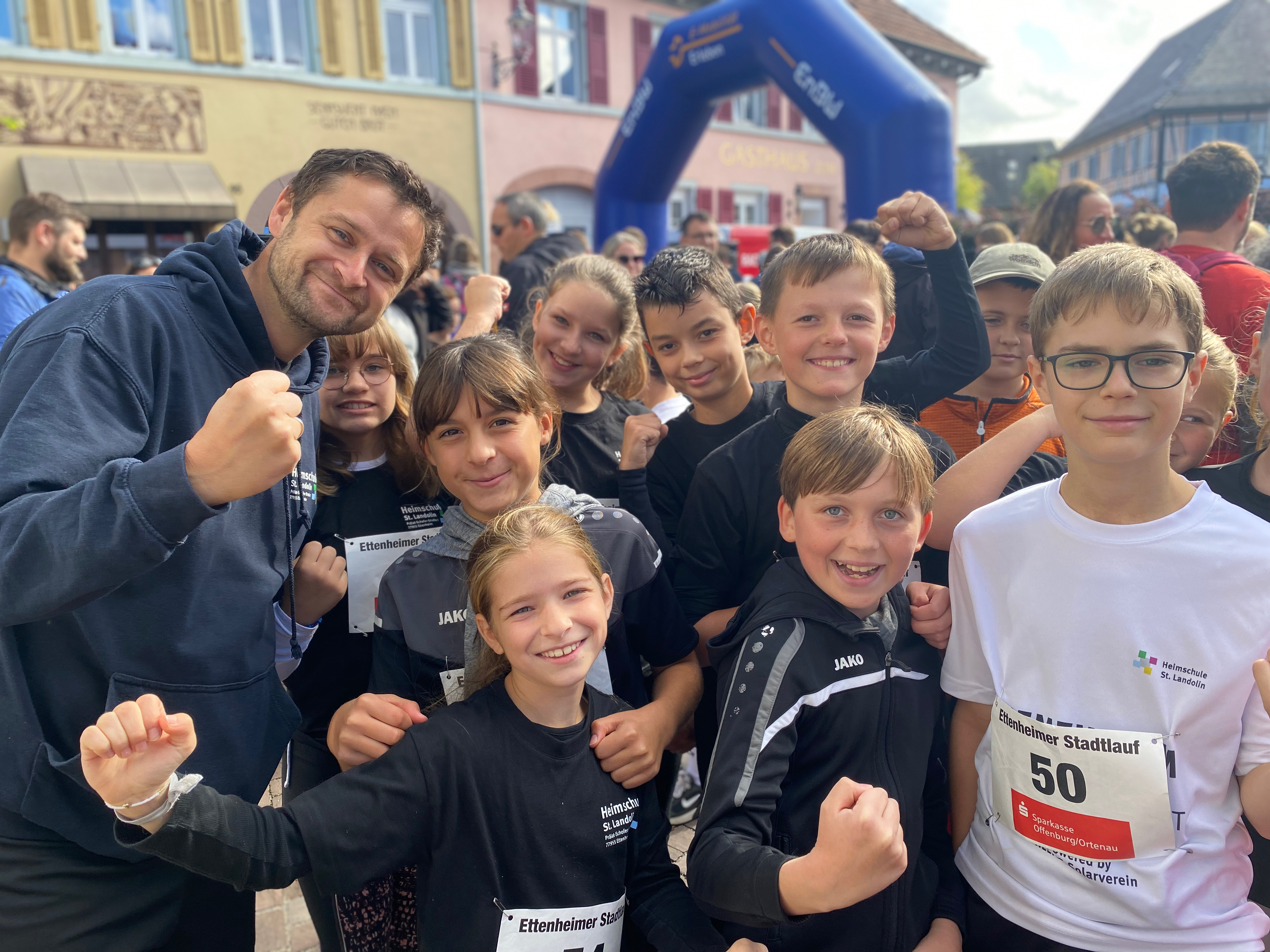 „Auf die Plätze - Feeeertig - Los“: Der LV Ettenheim hatte im Oktober wieder zum Ettenheimer Stadtlauf in vier Kategorien geladen (Bambinis, Schülerlauf über 2 Kilometer, Teamlauf über 4 Kilometer und Hauptlauf über 10 Kilometer). Beim Schülerlauf nahmen von der Heimschule sensationelle 22 Klassen teil – etwa 140 Läuferinnen und Läufer aus dem 180-köpfigen Teilnehmerfeld kamen von unserer Schule. So war die Ettenheimer Altstadt gut gefüllt mit HSL-Trikots und alle hatten viel Spaß bei der gemeinsamen Bewegung bei bestem Laufwetter.