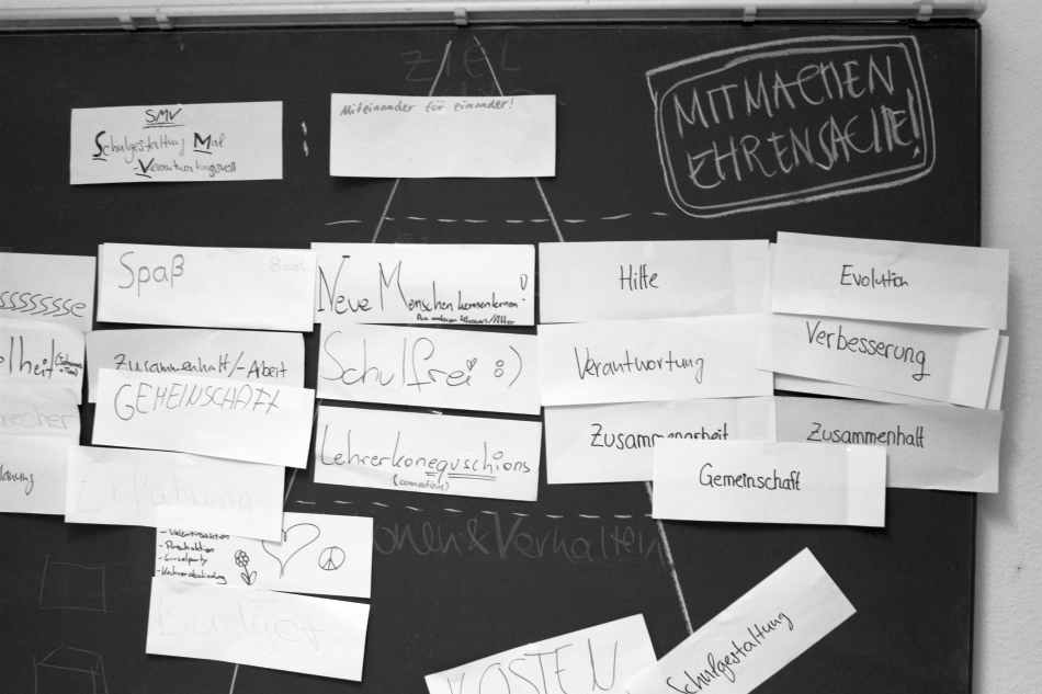 Viel Grundsätzliches wurde im Laufe der zwei Tage diskutiert. Immer wieder die Erkenntnis: Mit- und Umgestaltung der Schule nach Schüler(innen)Interesse muss das Anliegen aller sein. Wie verteilen wir das Gewicht dieser Aufgabe aber wieder auf so viele Schultern, dass die einzelnen Projekte auch erfolgreich umgesetzt werden können? Wie vermeiden wir, dass die Arbeit immer wieder an denselben wenigen Verantwortlichen hängen bleibt? Wie gewinnen Schülerämter, wie die des Klassensprechers oder der Schülersprecherin, wieder an Bedeutung?