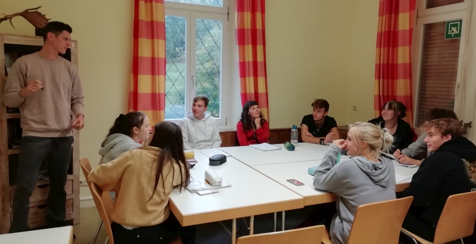 Wie jedes Jahr fand am Anfang des Schuljahres die traditionelle SMV-Hütte im Marienhof bei Baden-Baden statt. Elf Schülerinnen und Schüler des SMV-Gremiums aus Realschule und Gymnasium verbrachten gemeinsam mit den beiden neu gewählten Vertrauenslehrern Frau Henschel und Herrn Bury zweieinhalb Tage zusammen im Marienhof.