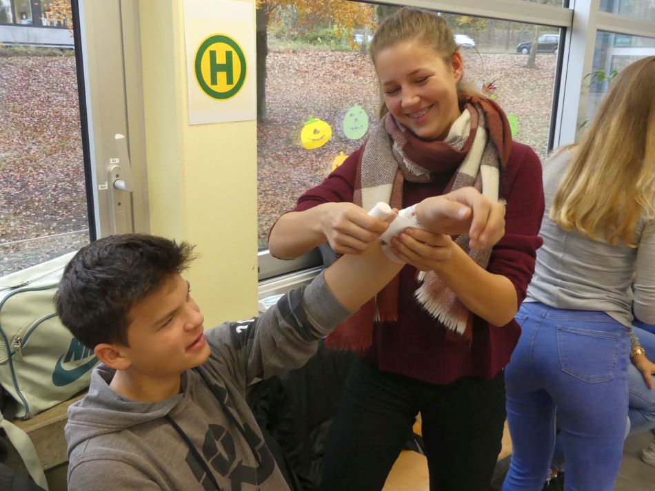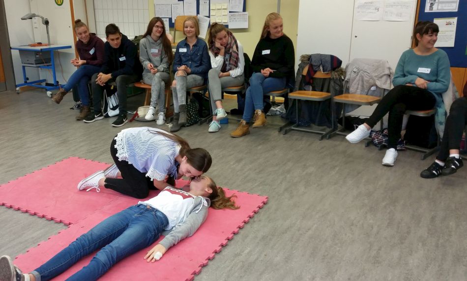 Erstmalig wurden im Rahmen der Thementage der Realschule an der Heimschule St. Landolin durch Ausbilder des DRK in drei Tagen alle 117 Schüler der Klassenstufe 9 in der Ersten Hilfe und der persönlichen Notfallvorsorge geschult. Die Schüler waren bester Stimmung, lernbegierig und hochmotiviert bei der Sache. Die Zusammenarbeit klappte vorzüglich. Aufgrund der positiven Resonanz ist für 2018 ein weiteres Projekt geplant: Ein voller Erfolg für alle Beteiligten.