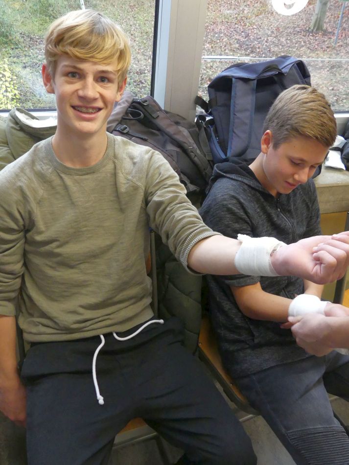Pro Jahr erleidet statistisch deutschlandweit jeder elfte Schüler einen Unfall in der Schule. Gut, wenn schnell jemand da ist und das Richtige tut. Die Schulsanitäter der Heimschule St. Landolin kennen sich aus. Wenn etwas passiert, kümmern sie sich um die Erstversorgung und rufen, falls notwendig, den Rettungsdienst. Und dies bereits seit über 15 Jahren, gegründet auf Initiative engagierter und verantwortungsbewusster Lehrkräfte.
