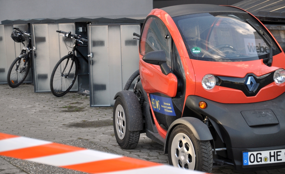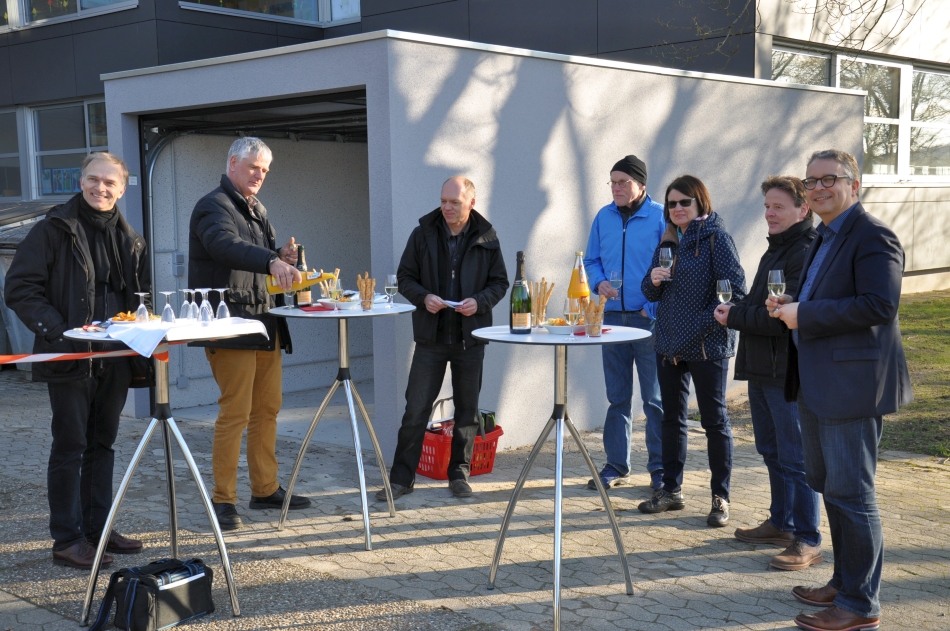 Die auf den ersten Blick unscheinbare Garage und Boxen haben es in sich: Erstens zeigen sie Schülerinnen und Schülern den vollständigen Weg der Sonnenenergie von der eigenen Anlage über die Ladestationen hin zu den Batterien in Auto und Fahrrädern. Zweitens können die E-Bike-Boxen über den Verein gemietet werden, um E-Bikes wettergeschützt und sicher – und samt Lademöglichkeit – an der Schule abzustellen. „Wir wollen damit den Umstieg von den Elterntaxis hin zum E-Bike fördern“, so Reinhard Kastner. Und drittens bietet die Garage für den Twizy nun die Möglichkeit, das Car-Sharing-System des Helios Solarvereins auszubauen. Bisher war das Auto im Schulkeller geparkt und daher von außen nicht erreichbar. Schulleiter Eberhard Pfister erklärte, dass in den kommenden Wochen für Vereinsmitglieder über den Transponder, den alle Mitglieder der Schulgemeinschaft ohnehin schon haben, auch die Buchung des Twizys und das Öffnen der Garage ermöglicht werden soll. Somit wäre hier ein unkompliziertes und günstiges E-Car-Sharing-Angebot geschaffen – und der Verein könnte einige neue Mitglieder gewinnen. Angesichts dieser Aussichten wünschte sich Reinhard Kastner im Namen des Vorstands nur eins: „Viel Sonne, unfallfreie Fahrten und einen Aufbruch in umweltfreundliche Zeiten.“
