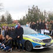 Der Polizeiposten in Ettenheim liegt nicht weit entfernt von der Heimschule St. Landolin; für die beiden Beamten, die im Rahmen einer Unterrichtskooperation den Physikunterricht der G8b besuchten, war der Weg also nicht weit. Dennoch kamen sie mit dem Einsatzfahrzeug, denn dieses war zentrales Anschauungsobjekt in einer innovativen Unterrichtseinheit zur Optik. Die Schüler erfuhren ganz praktisch, auf welchen optischen Grundlagen die schnelle Wahrnehmbarkeit von Einsatzfahrzeugen beruht.