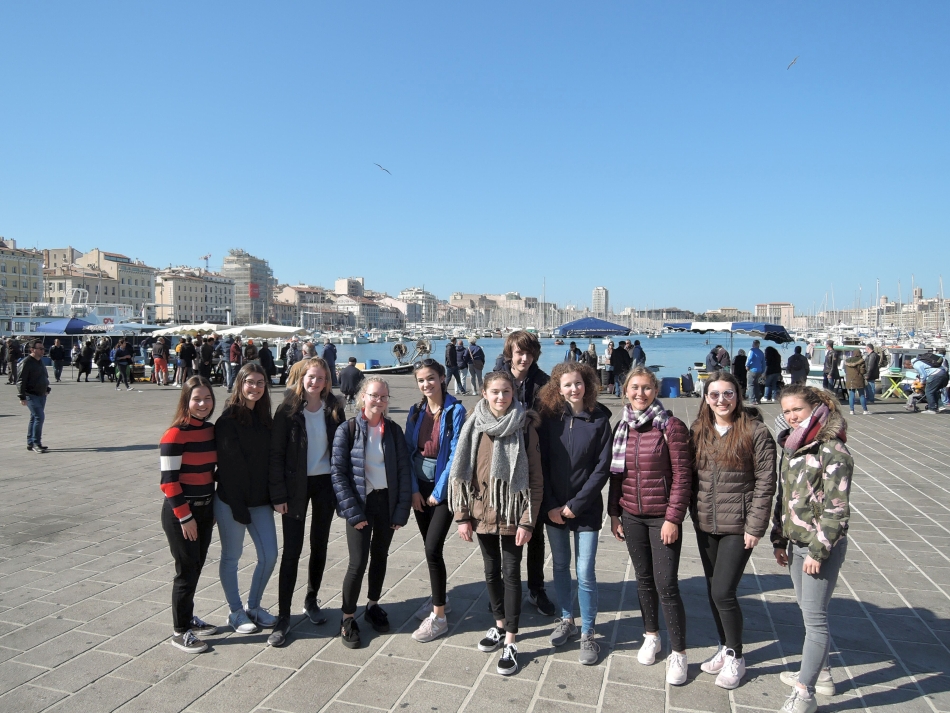 Am kommenden Morgen machten wir uns mit dem TGV auf den Weg nach Marseille gefahren, direkt an die Küste Südfrankreichs. Dort waren wir in einem Museum über Mittelmeerkulturen. Nach dem Mittagessen fuhren wir mit dem „Petit Train“ zu der Kathedrale auf dem Berg. Die Kathedrale war beeindruckend und auch der Ausblick auf Marseille war wunderschön. Danach hatten wir noch Zeit, um Souvenirs zu kaufen.