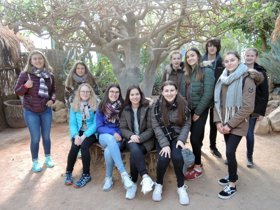 Nach einer langen Zugfahrt kamen wir am Montag in Lyon an, wo auch schon unsere „Corres“, d.h. unsere Austauschpartner, warteten. Mit ihnen gingen wir direkt in den Unterricht und hatten anschließend Zeit, unsere „Corres“ und ihre Familien kennen zu lernen. Am nächsten Tag machten wir uns ein Bild von Lyon: Wir besuchten mit der Deutschlehrerin unserer Austauschpartner die Markthalle ‚Paul Bocuse‘. Ebenso besichtigten wir den ‚Parc de la tête d’or‘, in welchem wir die botanischen Gärten anschauten. Am Nachmittag gingen wir gemeinsam mit unseren „Corres“ in den Klettergarten, welcher etwas oberhalb Lyons lag, wo wir einen schönen Ausblick auf die Stadt hatten. Am Mittwoch wurden wir in der Schule vom Schulleiter offiziell willkommen geheißen und hatten ein gemeinsames Frühstück mit unseren Austauschpartnern. Danach besichtigten wir das Stadtviertel St. Jean, in welchem wir auch eine spannende Führung hatten. Den Nachmittag hatten wir dann frei und haben alle zusammen etwas unternommen.