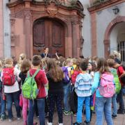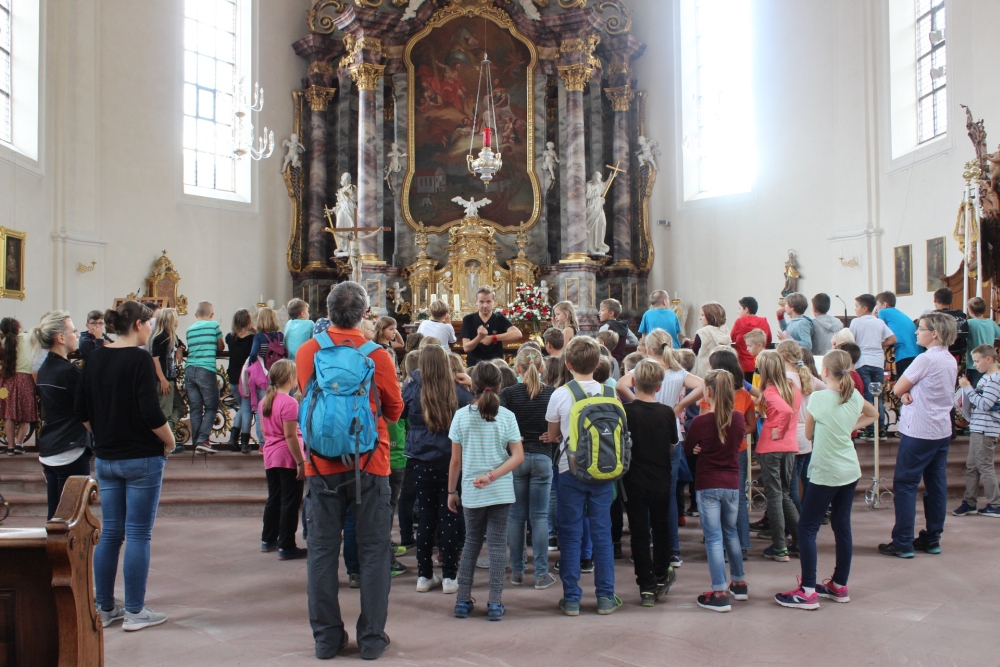 Näheres erfuhren die Schülerinnen und Schüler bei ihrer Ankunft in der Wallfahrtskirche, wo der ehemalige Lehrer der Heimschule, Werner Veith, zuvor an der Silbermannorgel spielte.