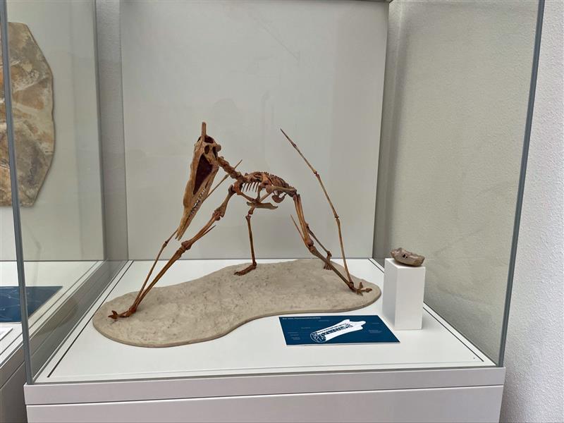 0d802aa1-df7e-4ca2-8705-d292c6d942be.jpgBei der Führung vor Ort wurde der evolutionäre Werdegang der Vögel an naturgetreuen Nachbildungen der Zwischenformen vom Dinosaurier zum Vogel vorgestellt. Dass die Dinosaurier wohl ganz anders aussahen, als es uns die Macher von Jurassic Park weismachen wollen, ist in der Wissenschaft schon länger bekannt und war jetzt auch für uns nicht grundlegend neu. Eine Nachbildung eines befiederten Dinosauriers in Originalgröße zu sehen, war dann jedoch etwas anderes und half, die Entwicklung der Klasse der Vögel aus den Dinosauriern nachzuvollziehen. Der Weg zum Vogel war lang, mussten sich aus dem Federflaum, der die Dinosaurier lediglich isolierte, doch erst komplexe Federn entwickeln, die das Fliegen ermöglichten. Darüber hinaus musste sich das Becken der Vögel öffnen, damit größere Eier gelegt werden konnten und es musste Gewicht eingespart werden, damit die Vögel auch abheben konnten. Wussten Sie, dass ein Vogel mit mehr als 20 Kilogramm Körpergewicht nicht fliegen kann? Damit gehört unser heimischer Höckerschwan mit zu den schwersten flugfähigen Vögeln der Welt!