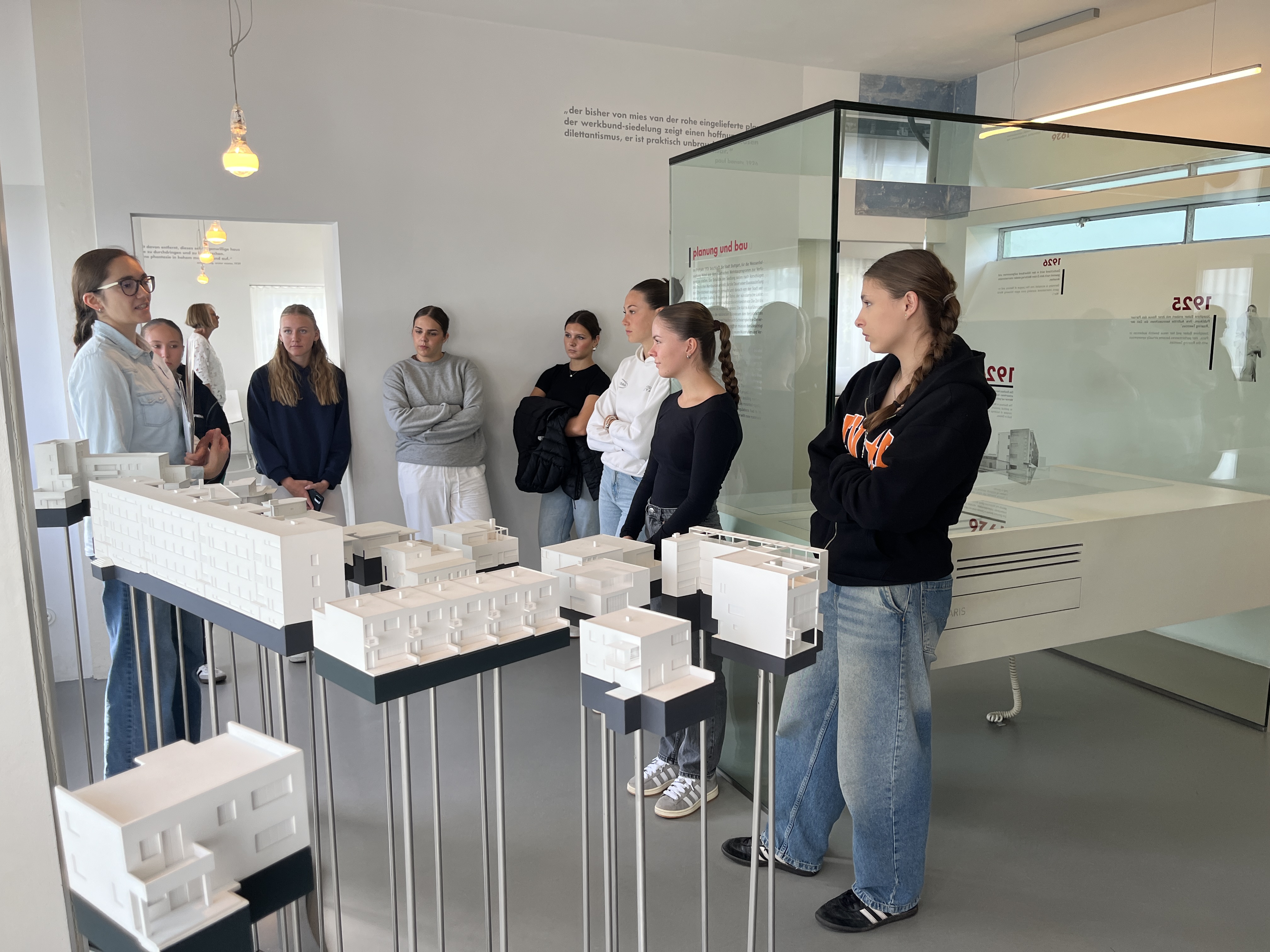 Am 18. September unternahmen die beiden Kunstleistungskurse von Frau Liebherr und Frau Wurth einen Ausflug nach Stuttgart, um die berühmte Weissenhofsiedlung zu besichtigen. Die Weissenhofsiedlung, die 1927 im Rahmen einer Bauausstellung entstand, gilt als Meilenstein der modernen Architektur. Besonders intensiv setzten wir uns mit dem Doppelhaus von Le Corbusier auseinander. Le Corbusier und seine Wohnarchitektur sind ein zentrales Thema im Abitur. Umso wertvoller sind die Eindrücke der Weissenhofsiedlung, die in bester Erinnerung bleiben.