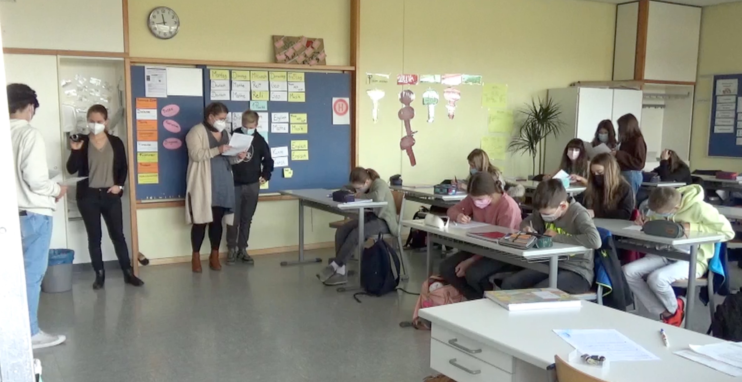 Am 18. November 2021 wurde die Klasse 7d der Realschule von einem Filmteam der PH Freiburg besucht. Unter Leitung von Prof. Dr. Anika Dreher und Jun. Prof. Marita Friesen sowie Karina Demmler wurde ein Unterricht zum Thema „Rationale Zahlen“ gefilmt. Nach anfänglicher Nervosität konnte die Klasse ihre starken Fähigkeiten im Bearbeiten von Problemen zeigen und die gestellten Aufgaben gemeinsam mit ihrer Mathelehrerin, Frau Siefer, in einer großartigen Lernumgebung lösen.
