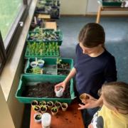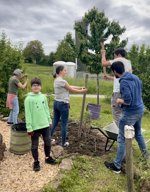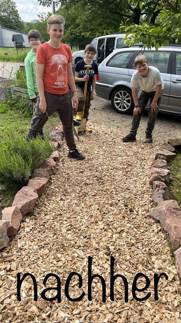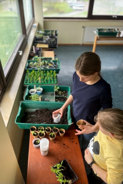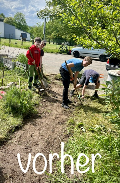 Schon seit Wochen sind die Mitglieder der Garten-AG fleißig am Säen, Gießen, Pikieren und Umpflanzen – sodass jetzt mehr Jungpflanzen herangewachsen sind, als in den Schulgarten passen. Nebenbei wurden die letzten Wochen auch genutzt, um alle Wege des Gartens zu erneuern, Rasen zu mähen und eine neue Brombeerreihe zu pflanzen.