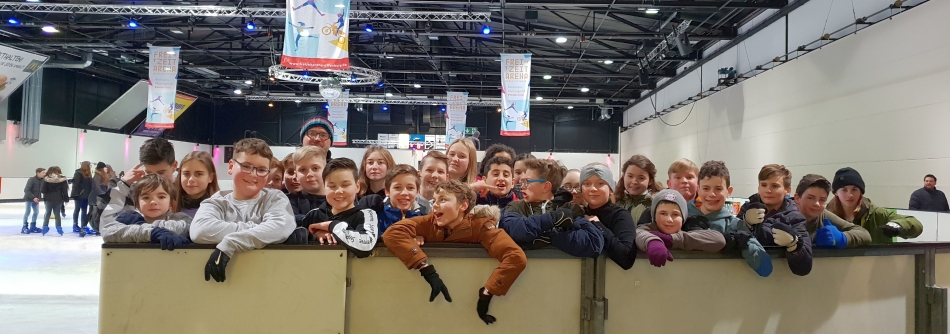 Drei Klassen mit insgesamt 84 Schülerinnen und Schülern der Realschule (R7b, R7c und R8e) machten sich am Montag, 4. Februar 2019, auf den Weg, die Eishalle in Offenburg zu erobern.