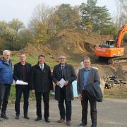 Im Rahmen eines Vororttermins stellten Bürgermeister Bruno Metz, Eberhard Pfister, Direktor der Heimschule St. Landolin, Ralph Schwörer, stellvertretender Direktor der Schulstiftung der Erzdiözese Freiburg, Peter Blaser, Geschäftsführer der ratio energie GmbH und Martin Oswald für die Fernwärme Ettenheim den aktuellen Stand der Bauarbeiten vor.