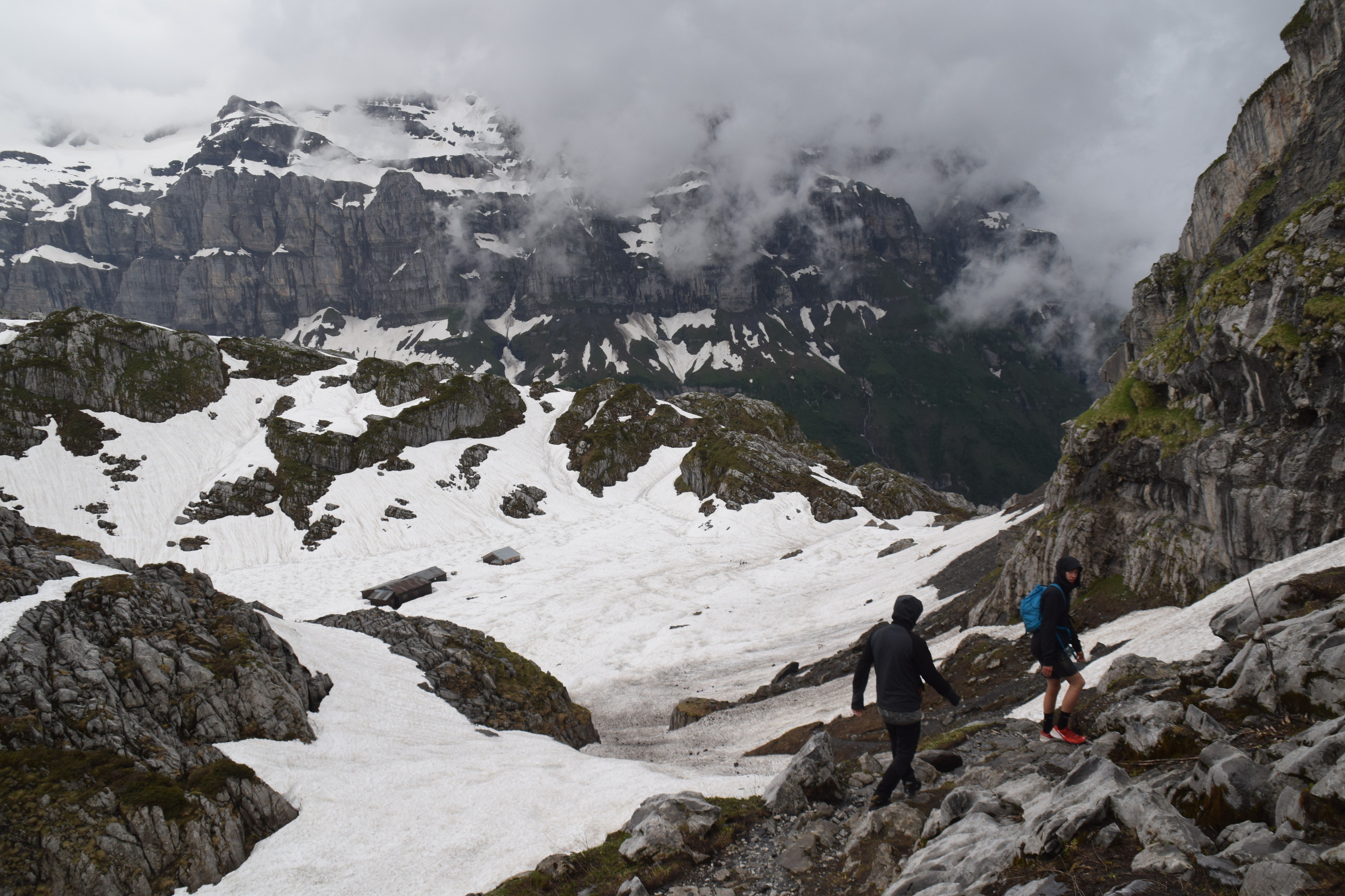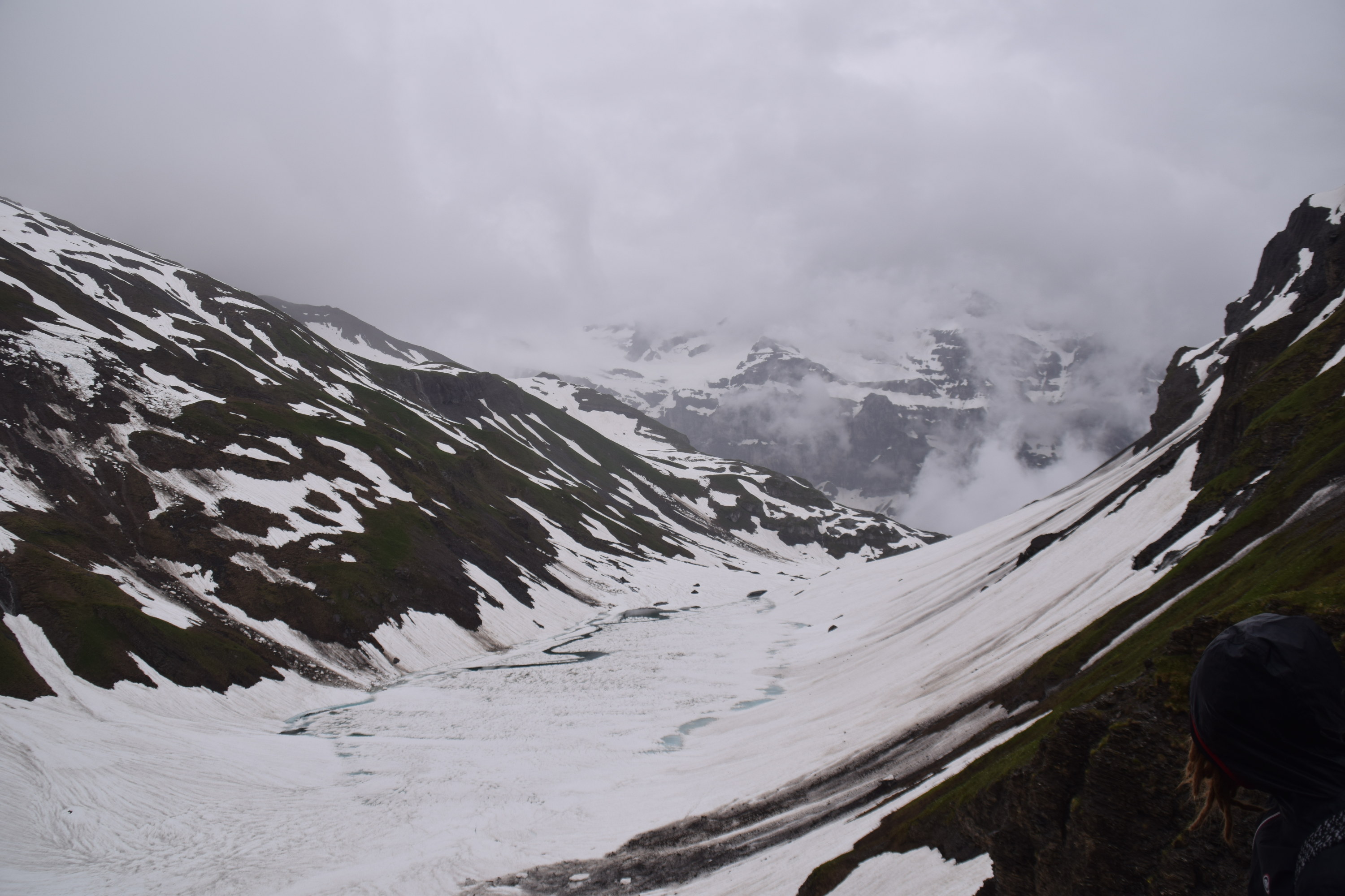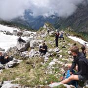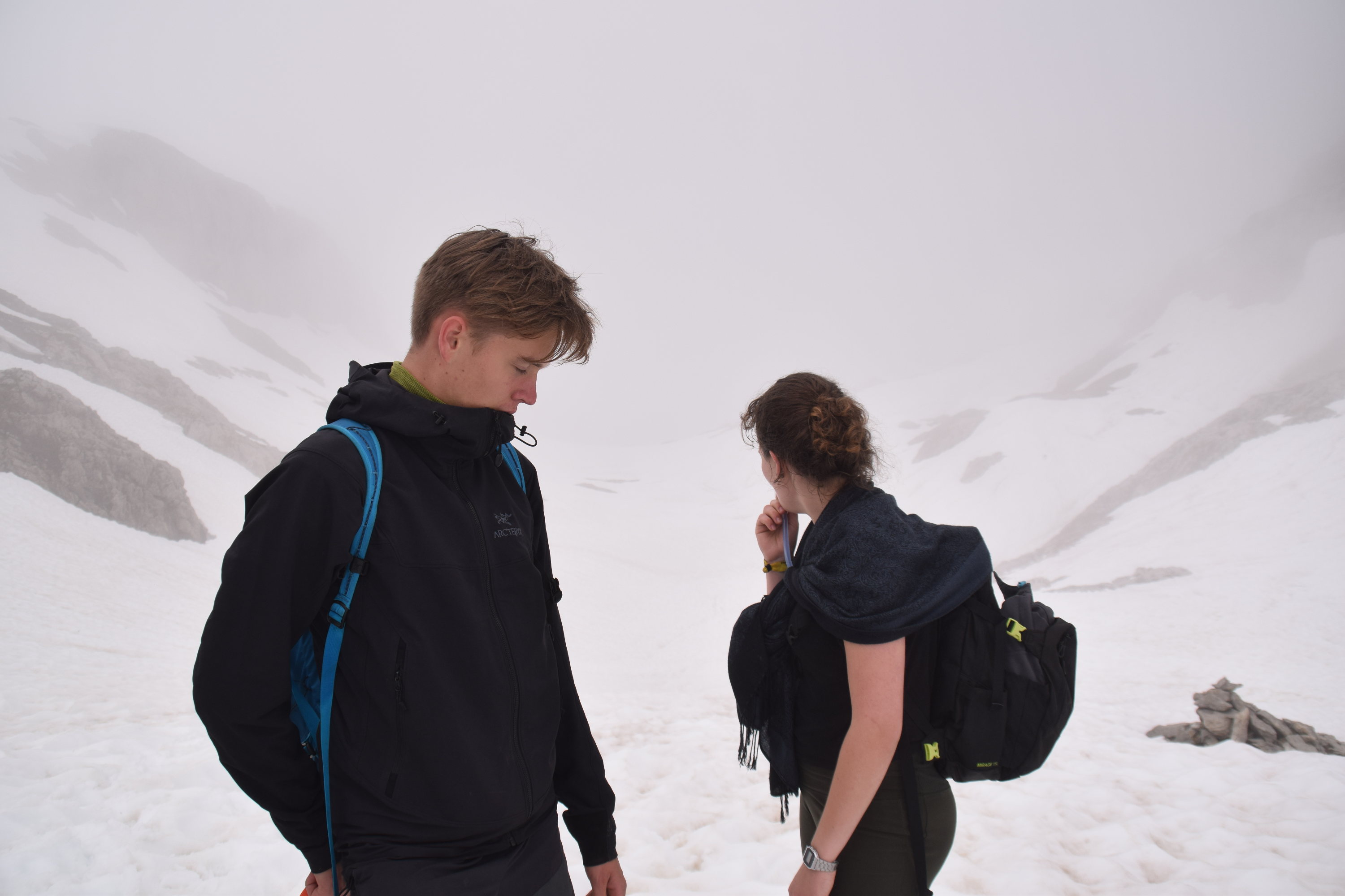 Dienstagmorgens wurden wir dann viel zu früh aus den Federn geworfen, um bei mittelmäßiger Wettervorhersage unsere „Wanderung“ anzutreten: Vorneheraus ein enthusiastischer Herr Jülich mit unbremsbarer Vorfreude auf den Berg, hintendrein eine etwas skeptischere Schülergruppe. Zwanzig mehr oder weniger steinige Kilometer legten wir durch alpines Gelände zurück. Schneefelder, Wasserfälle, vereiste Bergseen und einsame Berghütten lagen auf unserem Weg. Apropos Berghütte: Vielleicht hätten wir uns doch Gedanken machen sollen, als die Hüttenwartin unser Vorhaben mit einem stillen Kopfschütteln quittierte… Auf 2281m angelangt, war an Umkehren jedoch nicht mehr zu denken. Jetzt wollten wir alle ins Ziel, davon konnten uns dann auch mehrere Stunden Dauerregen und vollkommen durchnässte Kleider nicht mehr abhalten. Dreizehn lange Stunden später sahen wir – endlich – unseren Busfahrer auf dem Wanderparkplatz stehen. In diesem Augenblick muss es manchen von uns so vorgekommen sein, als stünde der Messias höchstpersönlich da…