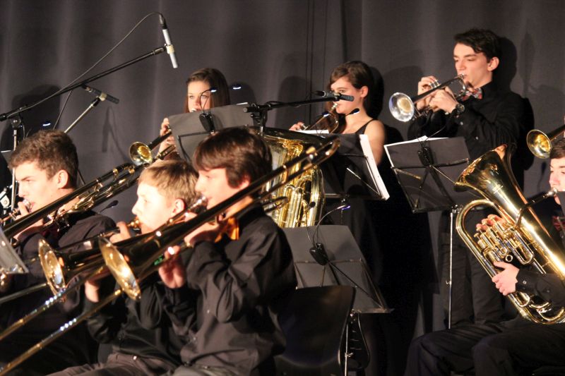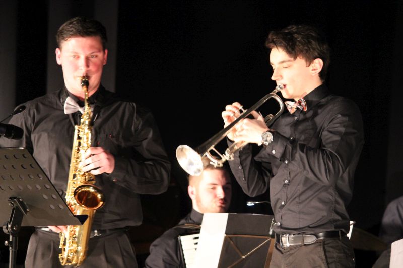 Diese Aufführung war ganz sicher ein musikalisches Highlight, welches über die Grenzen eines normalen Schulkonzerts hinausging. Hier stimmte einfach alles. Die Big-Band der Heimschule und der Chor „Move- your-voice“ boten hervorragende Musik mit zahlreichen Solisten und Solistinnen. Fetzige und bekannte Melodien waren ausgewählt und auf eine ausgefeilte Tontechnik geachtet worden. Jana Stephan moderierte das Ganze zusammen mit Kim Feldhan ausgesprochen professionell. Die Big-Band unter der Leitung von Markus Albu startete ihren Auftritt mal anders, aus dem Publikum heraus, nahm auf diese Weise die Zuhörer von Anfang an gleich emotional mit. Ins Ohr gehende Swing-Musik wie „American Patrol“ und Evergreens wie „Pink Panther“ taten ein Übriges, das Publikum zu begeistern. Als Big-Band-Solisten glänzten Lukas Andlauer, Jana Stephan und Simon Maier an der Trompete, Cedric Linn am Alt-Saxophon und Barbara Eisele am Tenor-Saxophon, Marius Hägle an der Posaune und Tom-Jordy Ruesch am Bass. Mit dem Titellied „Skyfall“ aus dem gleichnamigen James Bond-Film nahm die Big-Band das Publikum mit auf Verbrecherjagd zusammen mit Kim Feldhan in der Gesangsrolle.