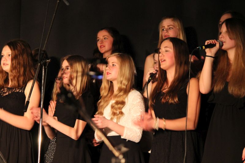Der Schulchor „Move your voice“ unter der Leitung von Tobias Schulz setzte den Reigen eingehender, wohl bekannter Melodien aus der Rock- und Popszene fort. Begleitet wurde der Chor von der Chor-Band bestehend aus Lars Meier und Tom-Jordy Ruesch am Bass, Hannes Oswald und Ruben Kilchling am Schlagzeug sowie Luca Kollmer am Klavier. Anke Fischer, Lea Siefer, Laura Förster, Constanze Zapf und Katharina Kaltenbach als Gesangssolistinnen nahmen das Publikum mit auf einen Highway durch die englischsprachigen Charts. Sie wurden dabei musikalisch vom Streicherorchester unter der Leitung von Indra Wilhelm begleitet. Mit „Don’t stop believin’“ von der amerikanischen Musikband Journey setzte der Chor zusammen mit der Band und Luca Kollmer als Gesangssolist ein weiteres Glanzlicht in diesem grandiosen Schulkonzert.