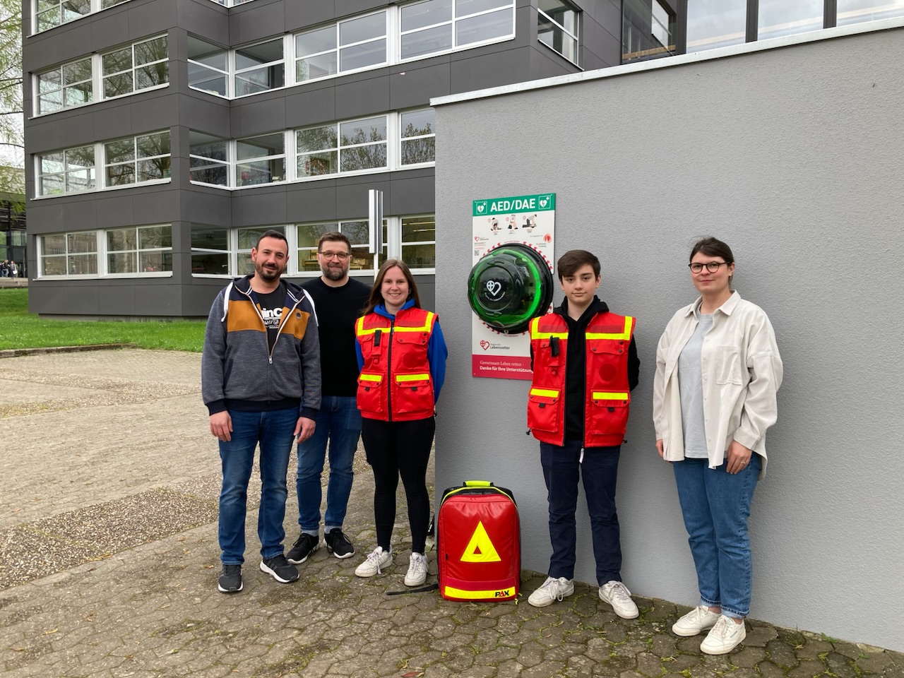 Bei einem Herz-Kreislaufstillstand kann ein DefibrillatorLeben retten. Weil dabei jede Sekunde zählt, helfen automatisierte Defibrillatoren dabei, dass auch Laien als Ersthelfer reanimieren können. Zwei solche Automatisierten Externen Defibrillatoren (AEDs) sind bereits seit Jahren im Gebäude der Heimschule St. Landolin stationiert. Nun wurde in der Busschleife auch ein öffentlich zugänglicher AED installiert.