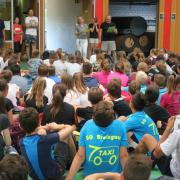 img_6899_0.jpgDa es sich im Unterschied zu den klassischen Bundesjugendspielen um Klassenwettkämpfe handelt, mussten sich die Schülerinnen und Schüler jeder Klasse im Vorfeld auf verschiedene Sportarten aufteilen. Bereits bei der Einteilung, die der Klassenlehrer oft im Rahmen des sozialen Lernens mit den Schülerinnen und Schülern durchführte, galt es, sich taktisch möglichst in allen Disziplinen gut aufzustellen. Am Sporttag selbst mussten alle im Wettstreit mit den anderen Klassen überall gut abschneiden, um am Ende weit vorne zu landen. In den Disziplinen Schwimmen, Tischtennis, Volleyball, Handball, Streetball (Basketball im 3:3 auf einen Korb) und Hockey gab es Punkte für die Gesamtwertung.
