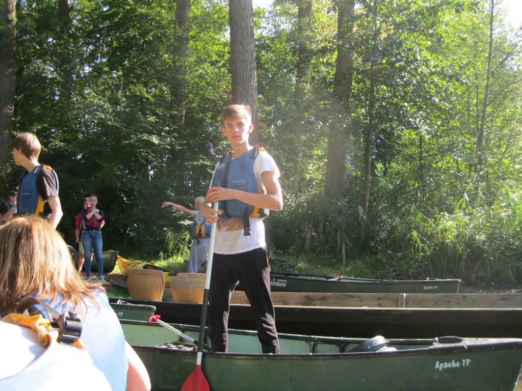 Am Samstag brachen wir in den Taubergießen zu einer Kanutour auf. Mit neun Booten paddelten wir durch die herbstliche Natur und konnten erfahren, wie  wichtig es ist, sich gut abzustimmen, wenn man ein Ziel erreichen möchte.  Der große Hunger, der auf der Tour entstand, wurde dann im Internat beim „Oktoberfest“ mit Brezeln, Fleischkäse und Weißwürsten gestillt.