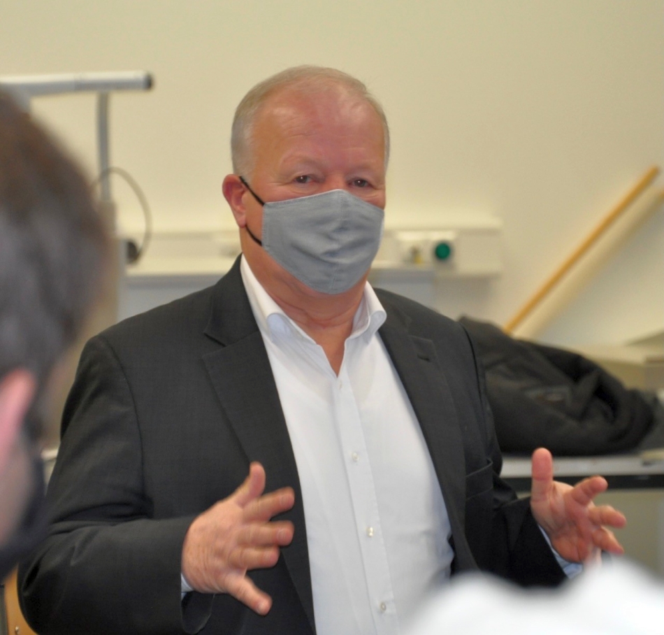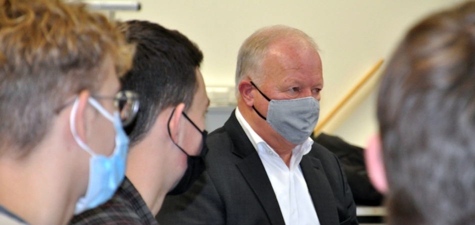 „Gespräche mit Politik-Leistungskursen sind immer eine Freude, denn da geht es um den Austausch mit jungen, gut informierten Leuten. Fordert mich ruhig heraus“, so eröffnete der Bundestagsabgeordnete Peter Weiß (CDU) die Gesprächsrunde mit dem Gemeinschaftskundekurs der J2 an der Heimschule St. Landolin, nachdem er sich zuvor bei einem Vor-Ort-Termin auf dem Campusgelände über die neue und in ganz Baden größte Solarthermieanlage informiert hatte. Er wurde von den 22 Schülerinnen und Schülern nicht enttäuscht. Im Vorfeld hatten sie mit dem Lehrer Olaf Schäferbarthold Themen und Fragen vorbereitet – und schnell entwickelte sich ein interessierter und offener Austausch.