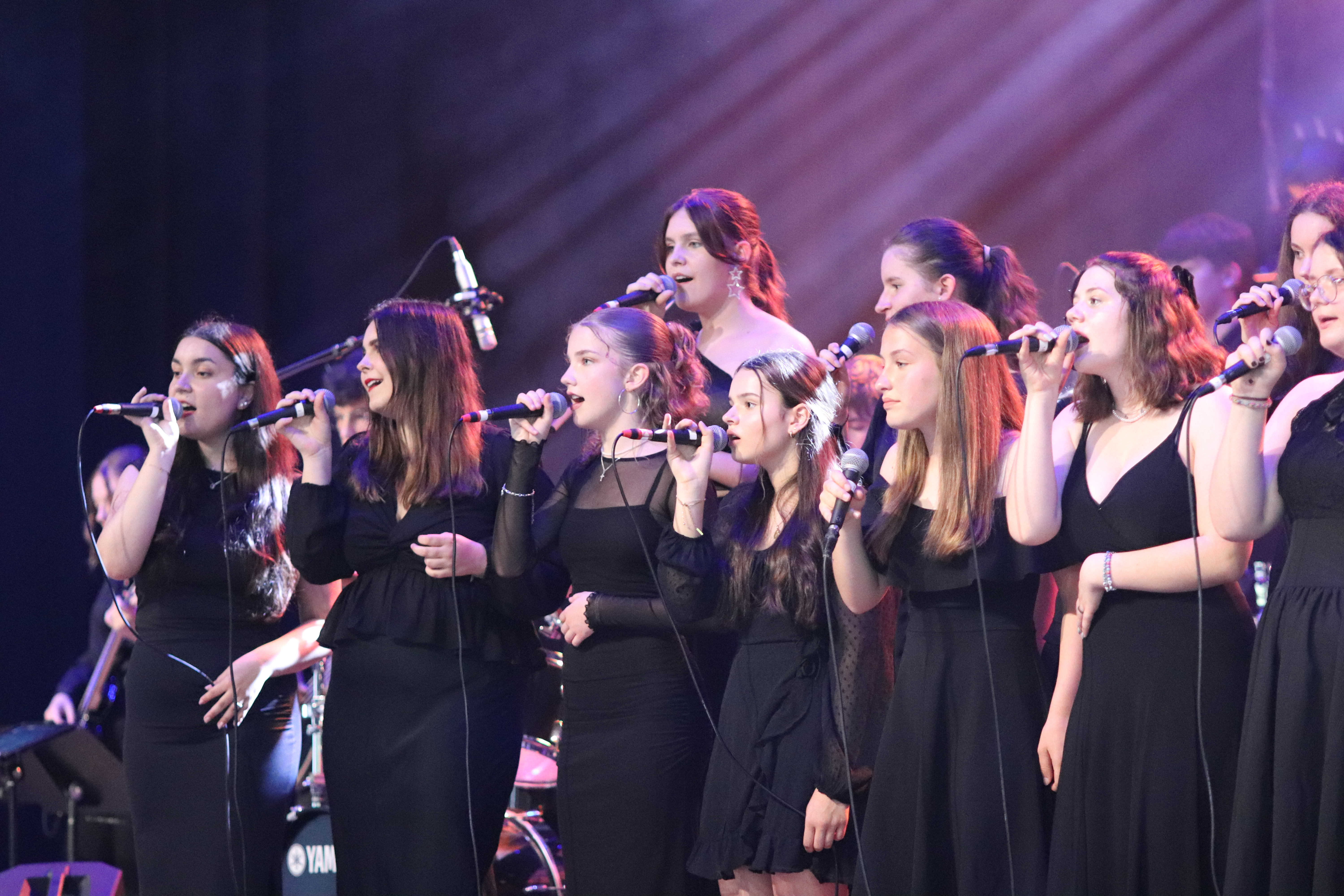 Über 1.100 Menschen waren gekommen, um an diesem denkwürdigen Jazz- und Rockkonzert mit dabei zu sein. Der erste Teil des Konzerts wurde vom Popchor „Move your Voice“ unter der Leitung von Tobias Schulz und Patrick Heil gestaltet und setzte von Anfang an emotionale und musikalische Akzente. Der Vorhang öffnete sich mit dem schwungvollen Song „Get on my Love“, der das Publikum sofort in seinen Bann zog. Leonie Stolz übernahm bei diesem Song das Solo und überzeugte.