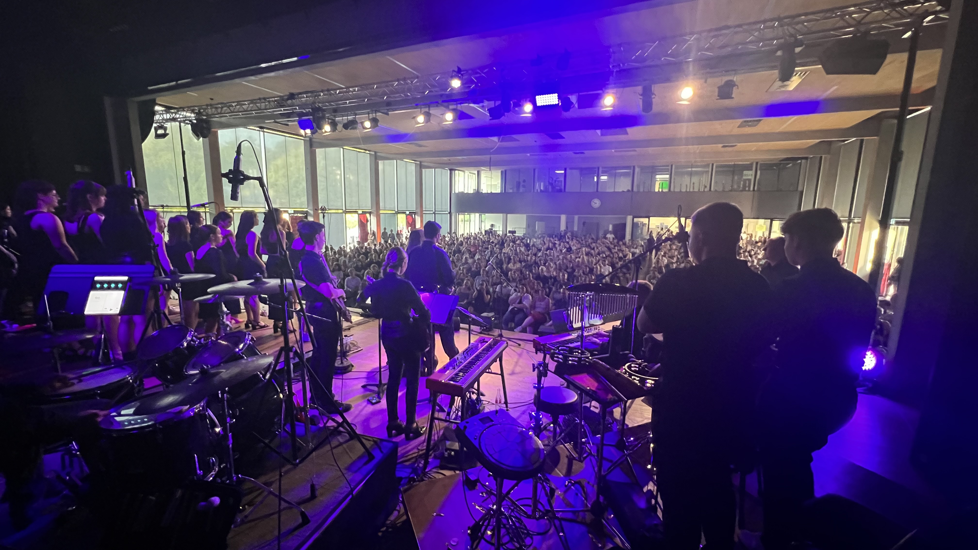Angekündigt als das aufwendigste Heimschulkonzert aller Zeiten, strömen Scharen von Menschen gespannt zu diesem Megaevent an die Heimschule St. Landolin am Montag, den 19.06.2023. Mit rund 500 Gästen ist dann auch wirklich jeder Platz der Aula besetzt. Aufregung und Vorfreude liegen in der sommerlichen Abendluft. Gleich wird sich der Vorhang öffnen zum jährlichen musikalischen Höhepunkt der Heimschule.