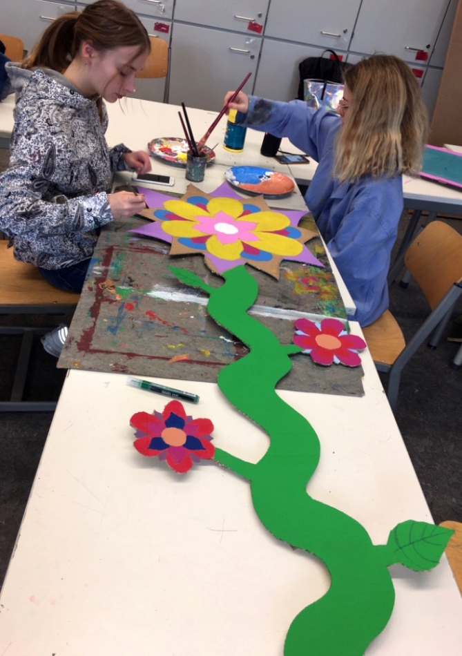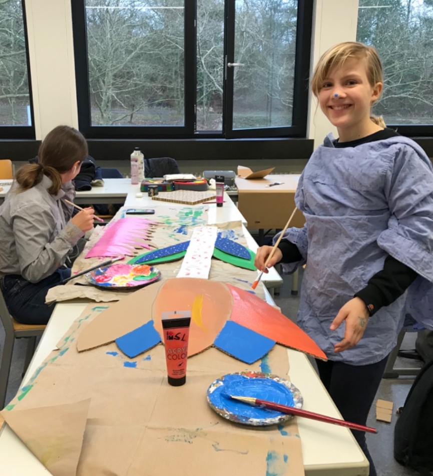 Die Schüler der Klassen G7c und G7d, die ab dem nächsten Schuljahr Kunst als Profilfach gewählt haben, besuchten Anfang März den Workshop zum Auftakt ins Kunstprofil. In diesem Jahr wurde auch hier an einem wichtigen Beitrag für das Programm zum Jubiläumsjahr gearbeitet: Für das Musical „Funny Nanny“, das am 23. Und 25. Juli auf dem Jubiläumsprogramm steht, entwarfen die Schülerinnen und Schüler die Bühnenbilder. In der Bildergalerie unten bekommen Sie schon Einblicke in diesen künstlerischen Beitrag zum Musical.