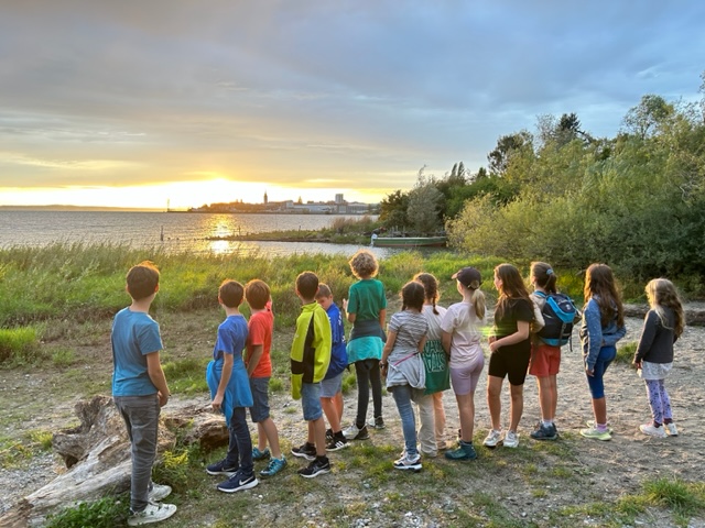 In der zweiten Schulwoche nach den Sommerferien gingen wir aus der G6c, wie alle anderen sechsten Klassen auch, mit unseren Klassenlehrern Herrn Haag und Frau Kurz nach Friedrichshafen ins Landschulheim. Mit dem Bus an der Jugendherberge angekommen, stand schon kurz darauf eine Stadtrallye durch Friedrichshafen an. In Teams wurden wir hierfür eingeteilt und ungefähr fünf Minuten später waren wir alle auf und davon, um uns den schwierigen Aufgaben zu stellen. Nachdem die Rallye beendet war, gingen alle zur Jugendherberge, um Abend zu essen: Nudeln mit Bolognese. Als wir den Tisch abgeräumt hatten, genossen manche von uns wie jeden Folgetag den Sonnenuntergang und gingen dann früher oder später ins Bett.