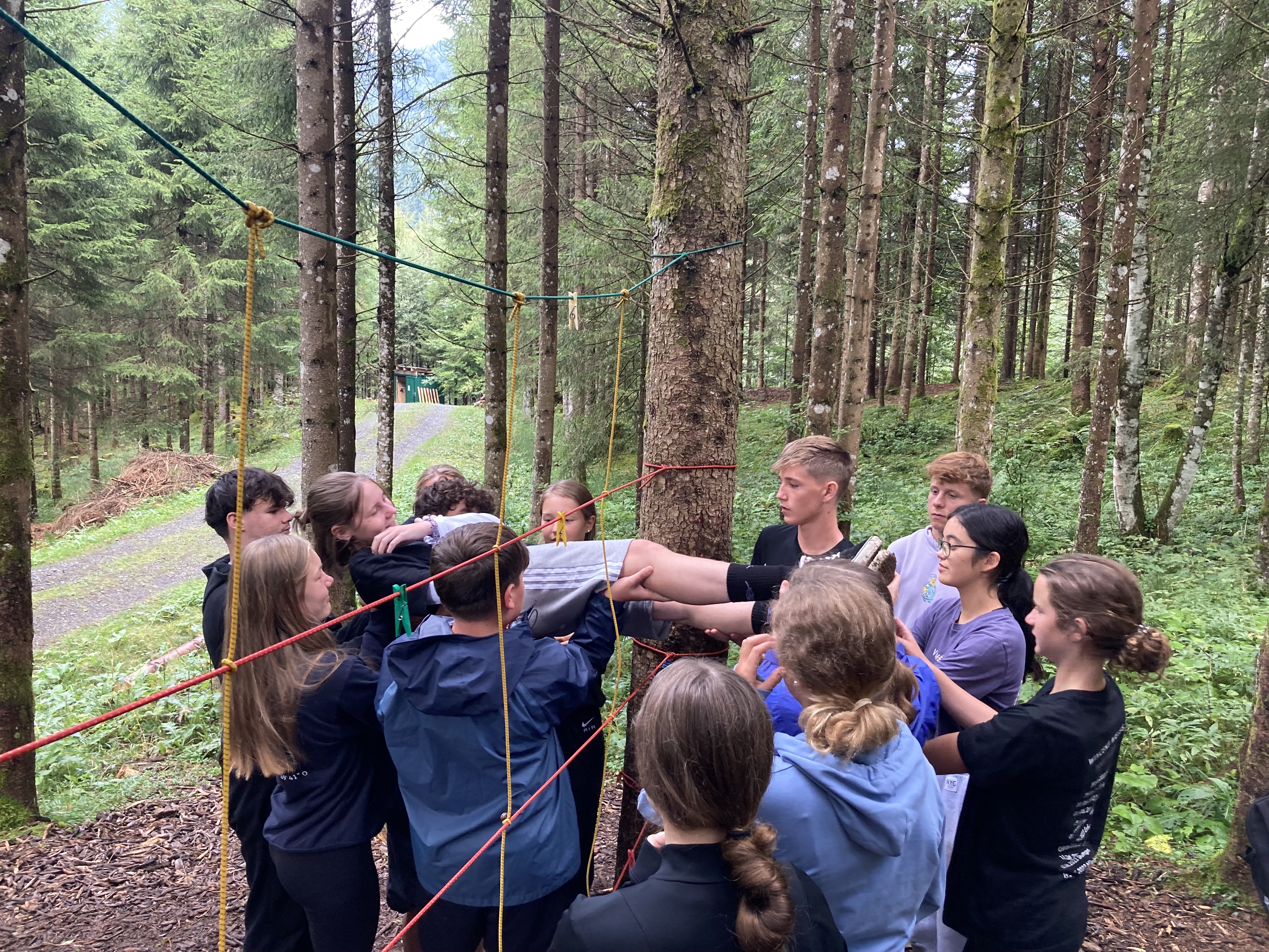 Unsere Teamerlebnisse, das Geocaching mit dem Teamer Chrissy und der Floßbau mit Sara und Helly, wobei wir als Gemeinschaft zusammenarbeiteten.