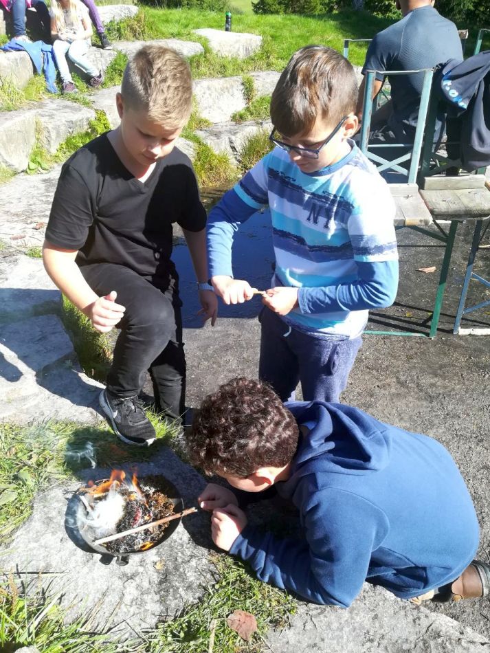 Am vierten Tag machten wir Bogenschießen und lernten Feuermethoden kennen. Am selben Abend veranstalteten wir eine Geburtstagsfeier für eine Klassenkameradin mit Kuchen – ein toller Abschluss!